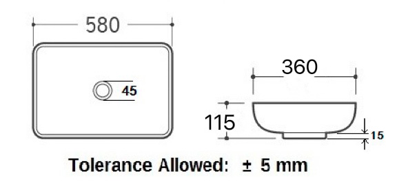 Wiesbaden Karé waskom rechthoekig 58 x 36 x 11,5 cm keramiek mat zwart