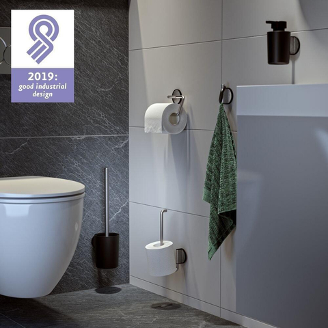 De reserverolhouder uit de Tune serie van Tiger is uitgevoerd in de kleur RVS geborsteld gecombineerd met mat zwarte accenten. Met dit accessoire zijn twee extra rollen toiletpapier op fraaie wijze op te bergen nabij je toilet. De reserverolhouder is voorzien van een krachtige dubbelzijdige 3M tape waardoor montage op iedere gladde, stevige ondergrond zeer eenvoudig is. Mocht de ondergrond niet geschikt zijn voor de toepassing van de dubbelzijdige tape, dan bestaat de mogelijkheid de reserverolhouder aan de wand te monteren met schroeven en pluggen. De Tune serie bevat tevens een groot aantal aanvullende accessoires voor de badkamer en toiletruimte in dezelfde stijl.