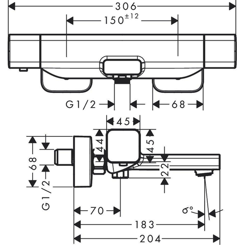 - Hartafstand van 150 ± 12 mm, geschikt voor standaard aansluitingen