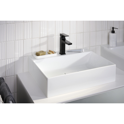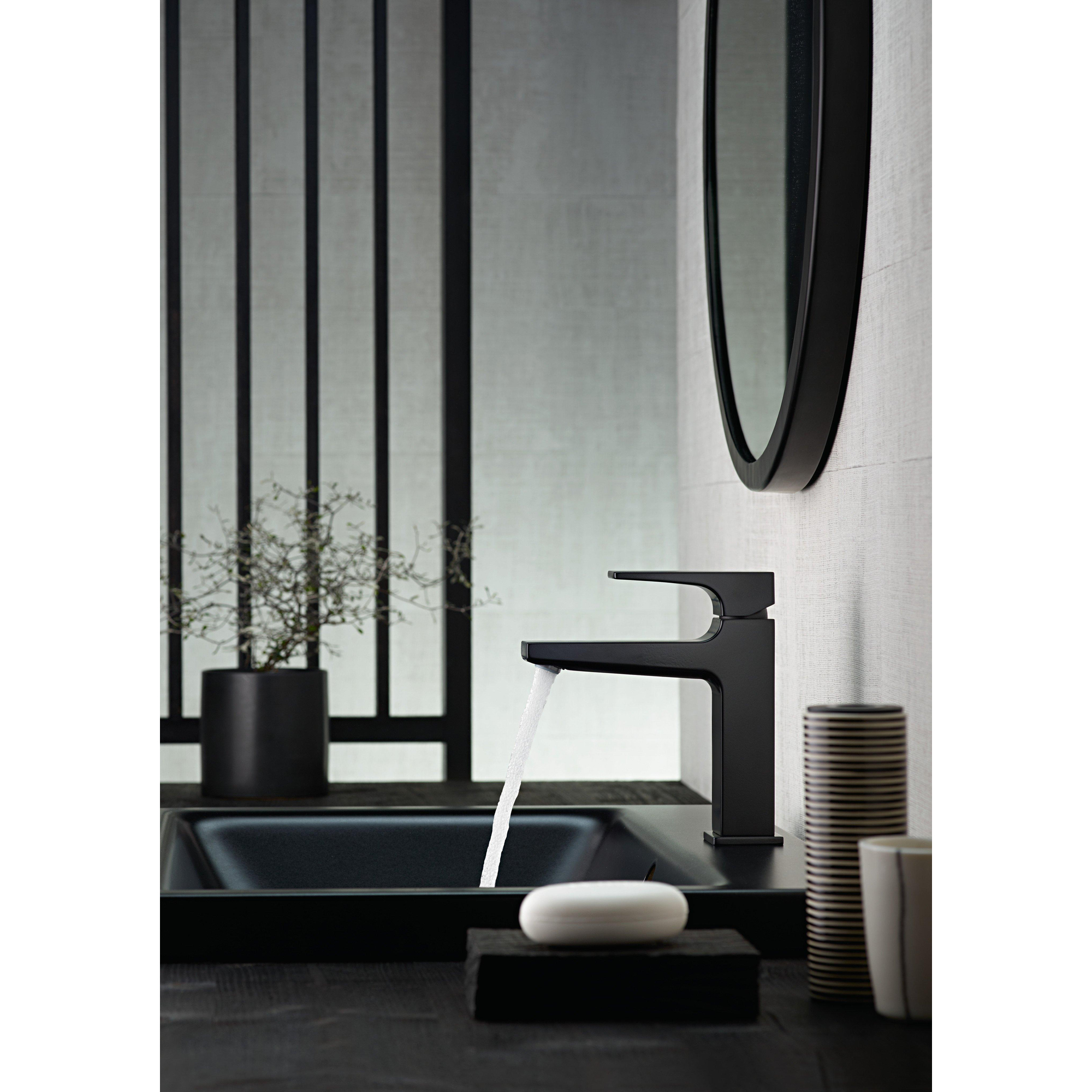 Met deze wastafelmengkraan geef je jouw badkamer een moderne en stijlvolle upgrade. Het strakke, geometrische design in mat zwart zorgt voor een opvallend contrast of een perfecte aanvulling op een eigentijdse inrichting. Dankzij de royale ruimte tussen de uitloop en de waskom geniet je van extra comfort bij het handen wassen. De kraan combineert moeiteloos elegantie met praktische functionaliteit, waardoor je elke dag weer plezier beleeft aan het gebruik ervan. Bovendien draagt deze kraan bij aan een duurzame badkamer dankzij slimme waterbesparende technologieën, zonder in te leveren op gebruiksgemak of stijl.