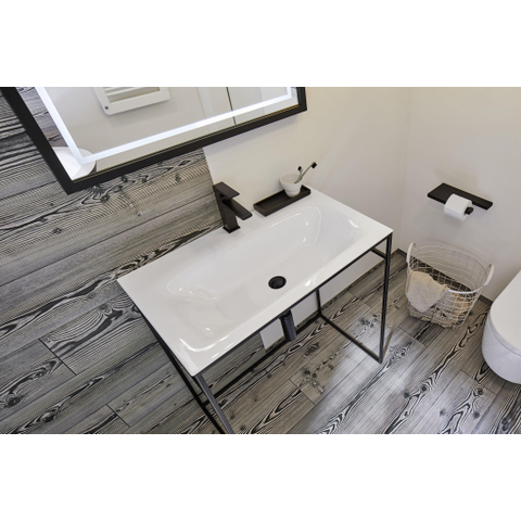 Het minimalistische ontwerp met rechte greep en matzwarte afwerking geeft jouw badkamer een eigentijdse uitstraling. Deze trendkleur past perfect bij moderne architectuur en zorgt voor een expressief contrast met lichte tegels of wastafels. De vlakke, geometrische vormen van de kraan stralen verfijning uit en maken het geheel tot een blikvanger. Zo creëer je een badkamer die niet alleen functioneel is, maar ook visueel inspireert.