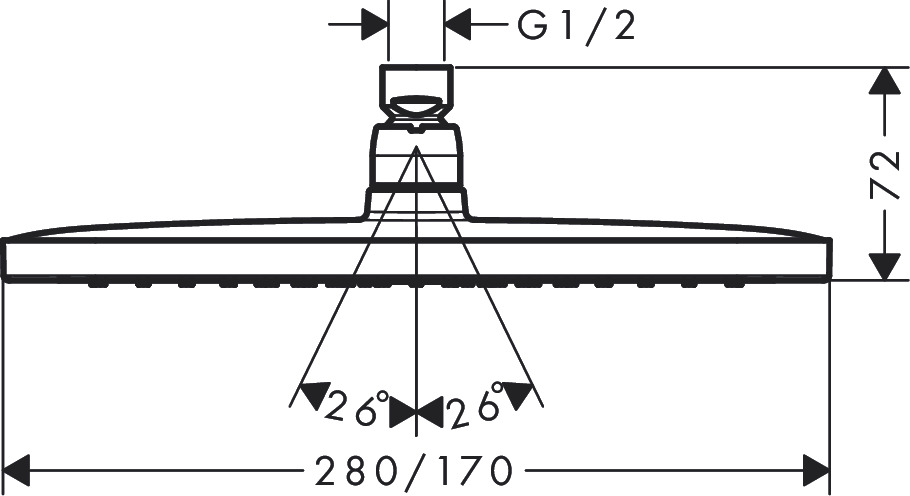 - Extra brede hoofddouche van 28 x 17 cm voor een royale, zachte regendouche