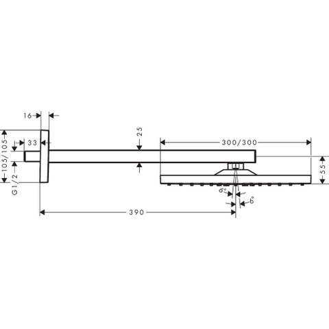 - Vierkante hoofddouche van 30x30 cm voor een royale waterstraal