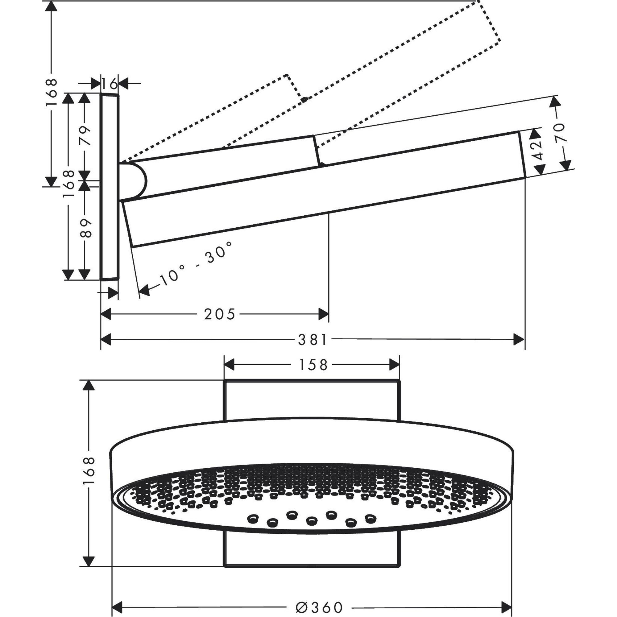 - Verstelbare douchearm (10-30° verticaal kantelbaar) voor optimale waterstraalrichting