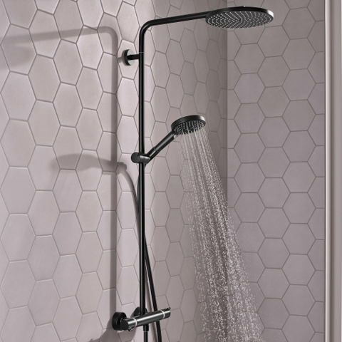 Dit douchesysteem is gemaakt van robuuste materialen die bestand zijn tegen dagelijks gebruik en vochtige omstandigheden. De matzwarte coating is niet alleen mooi, maar ook slijtvast en eenvoudig te reinigen. Dankzij de QuickClean siliconen noppen verwijder je kalkresten moeiteloos, waardoor de douchekop altijd optimaal blijft functioneren. De thermostaat zorgt voor een stabiele watertemperatuur en voorkomt onaangename verrassingen, wat bijdraagt aan een veilige en duurzame douche-ervaring. Zo geniet je jarenlang van comfort zonder zorgen over slijtage of storingen.