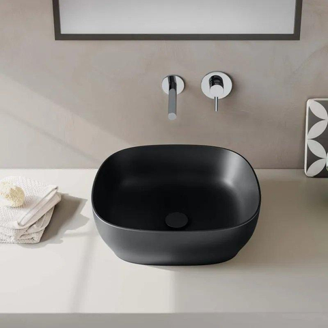 Vitra Outline opbouw wastafel vierkant zonder kraangat zonder overloop 47x41cm mat zwart