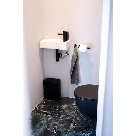 Differnz Helios fonteinset - 37.5x18.5x9.5cm - Rechthoek - 1 kraangat - Recht matte zwarte kraan - Mineraalsteen Marmer