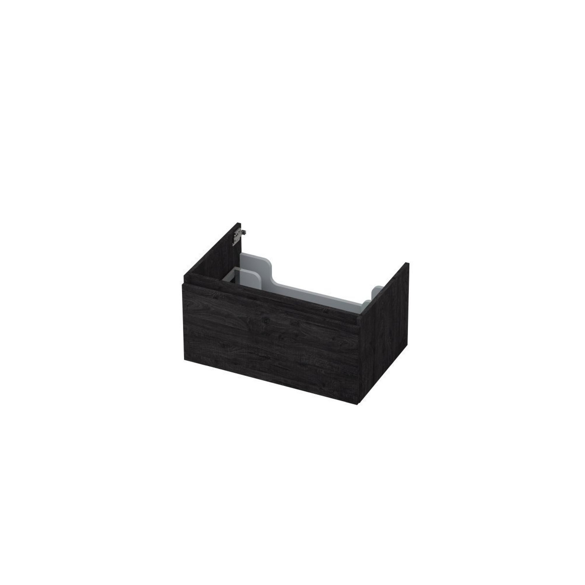 INK Wastafelonderkast - 70x45x35cm - 1 lade - greeploos - houten keerlijst - MFC Houtskool eiken
