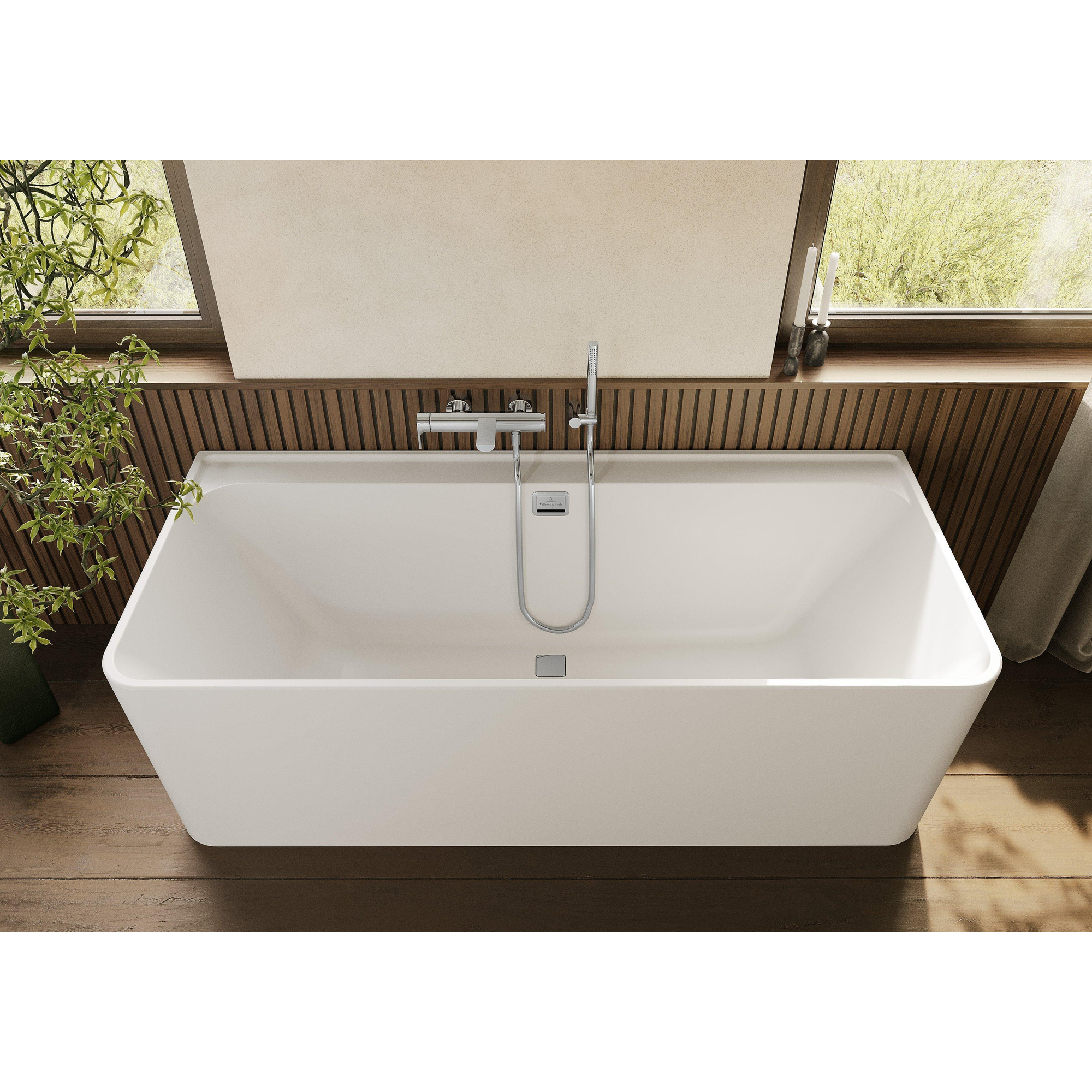 Villeroy & Boch Collaro half vrijstaand half vrijstaand bad - 180x80cm - rechthoek overloop chroom Acryl Glans Wit