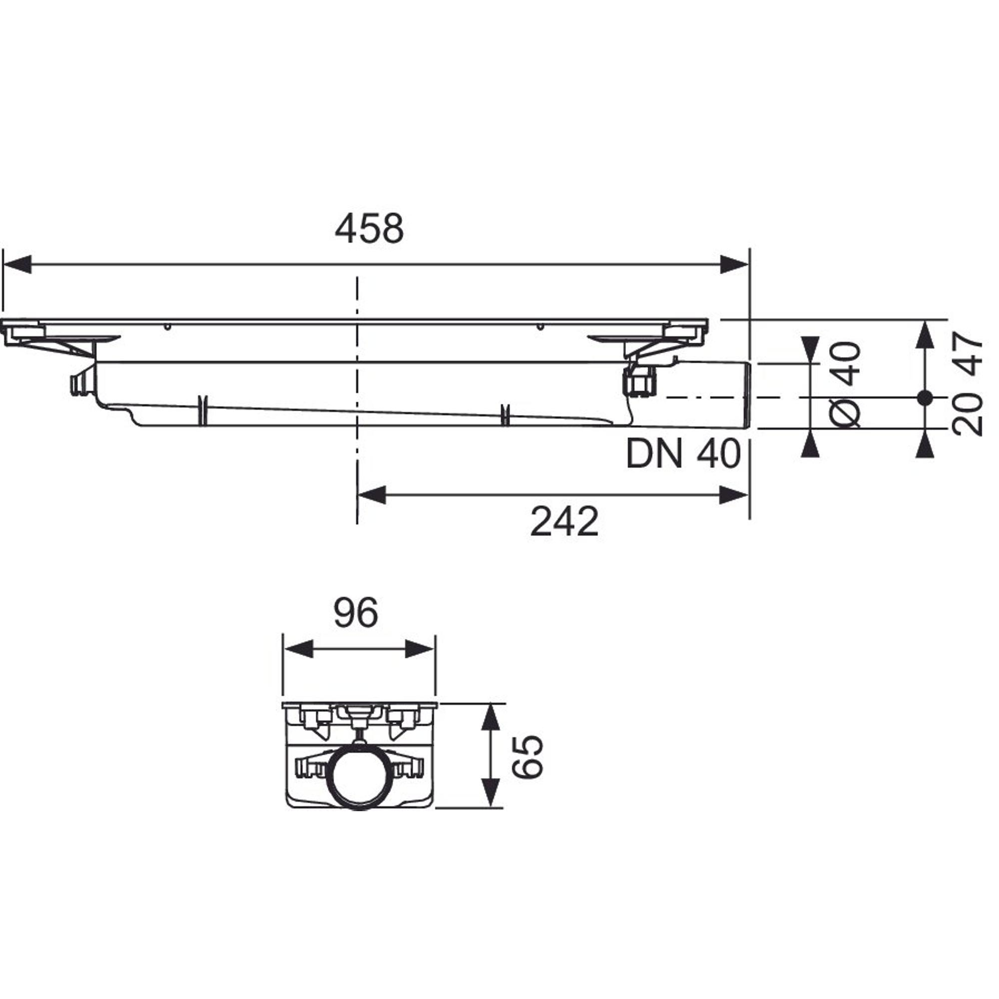 Tece - TeceDrainprofile - afvoer laag - DN 40 - horizontaal