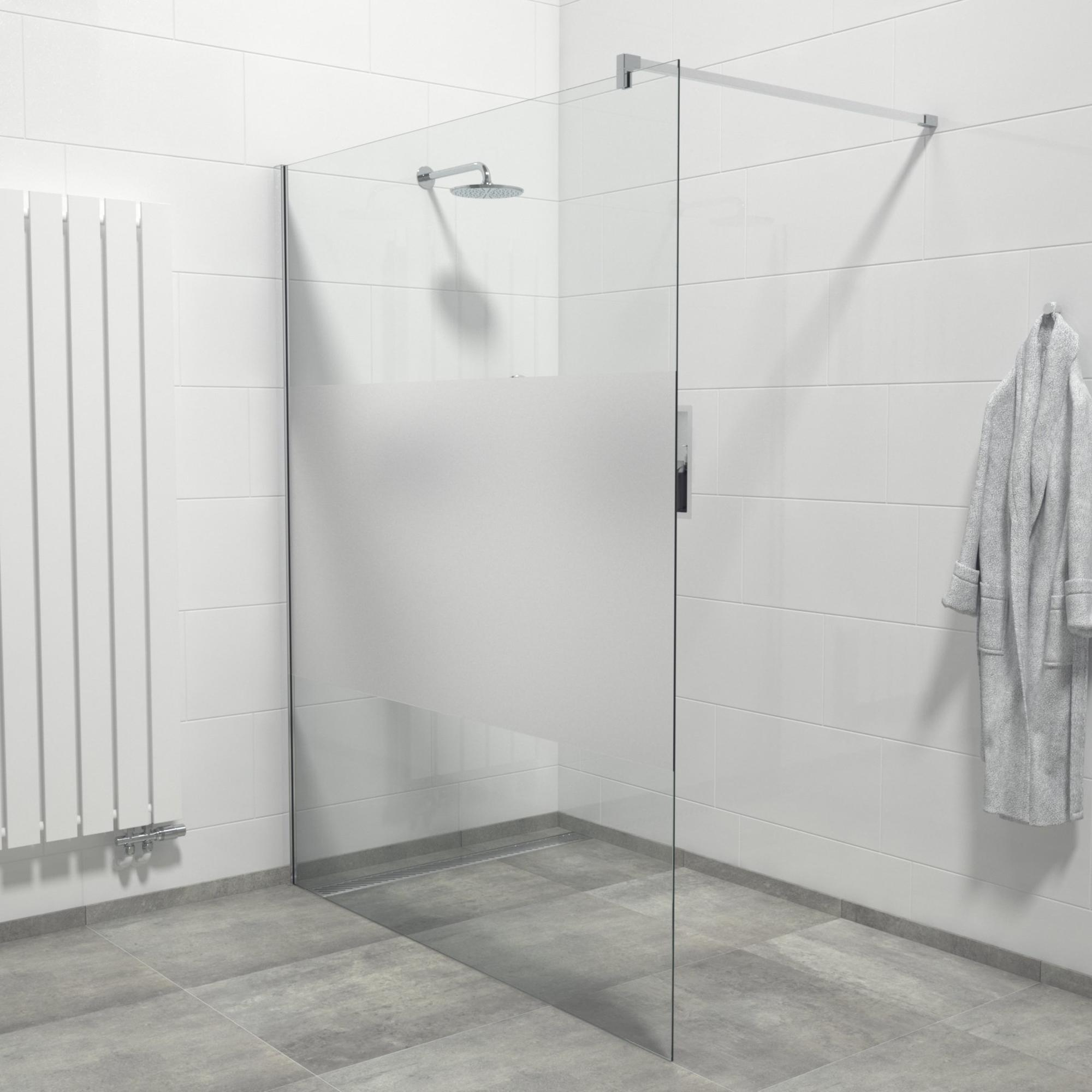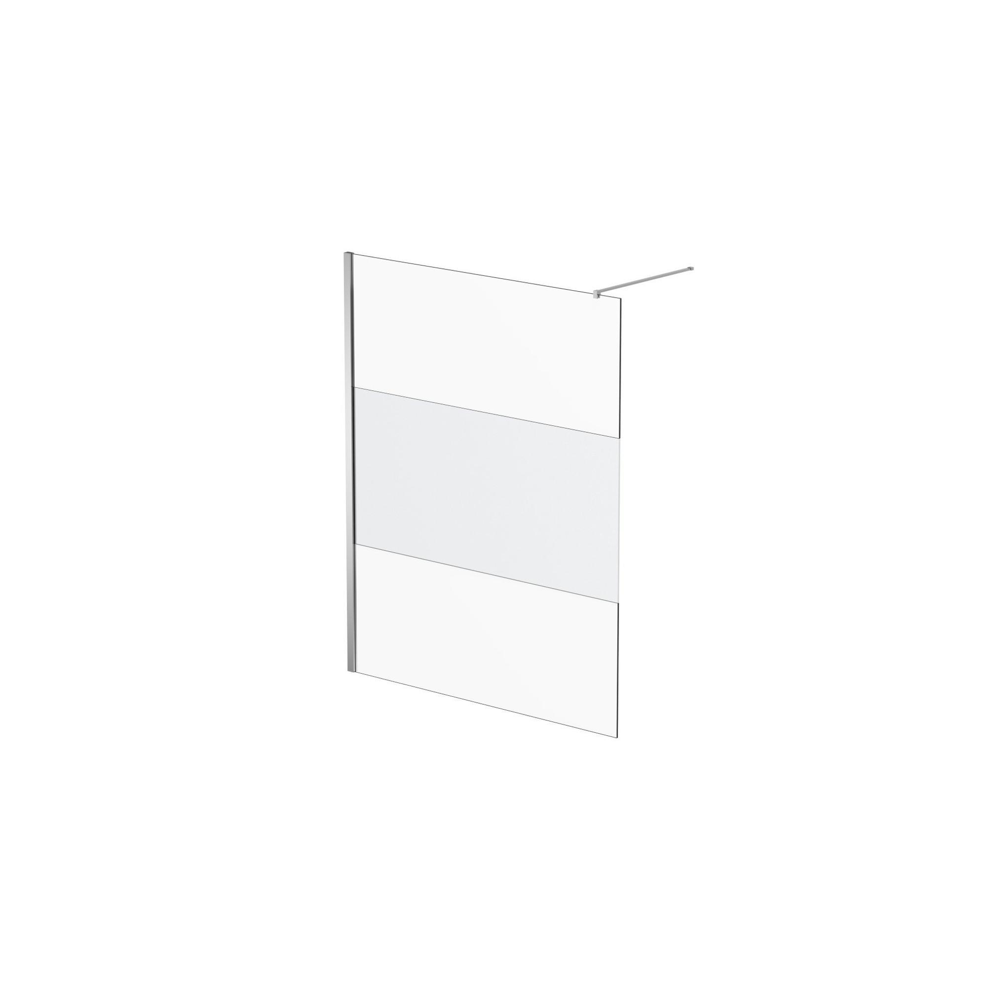 Deze inloopdouche valt direct op door zijn elegante en strakke design. Het heldere glas met de matte band creëert een subtiel contrast dat de douchewand een unieke uitstraling geeft. De chroomkleurige profielen voegen een glanzende, moderne finishing touch toe die perfect past bij zowel klassieke als eigentijdse badkamers. Door de open vorm en het minimalistische design oogt je badkamer ruimer en lichter, waardoor je iedere dag weer geniet van een luxe wellnessgevoel in je eigen huis.