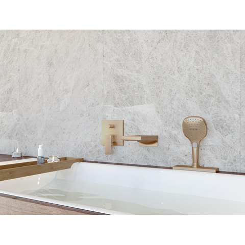Met een royale uitloop van 18,5 cm en een krachtige watervalstraal vult deze baduitloop jouw bad snel en efficiënt. De waterstraal wordt verrijkt met lucht (AirPower), waardoor het water zachter aanvoelt en minder spat. Dit verhoogt het comfort tijdens het vullen van het bad. Dankzij de wandmontage blijft de badrand vrij, ideaal om shampoo, zeep of andere wellnessproducten binnen handbereik te plaatsen. De bediening verloopt via een aparte inbouwmengkraan, wat zorgt voor een strak en overzichtelijk geheel. Zo combineer je moeiteloos stijl met gebruiksgemak.