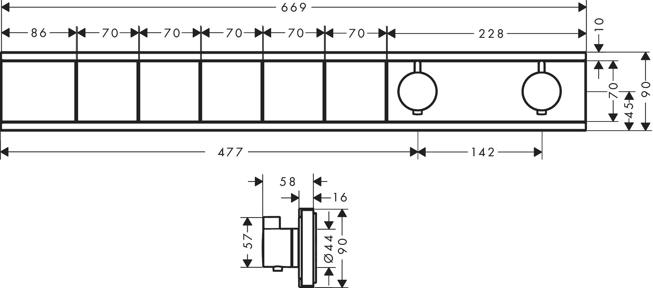 Hansgrohe RainSelect afbouwdeel voor inbouw douchekraan thermostatisch voor 5 functies 66.9x90cm mat wit
