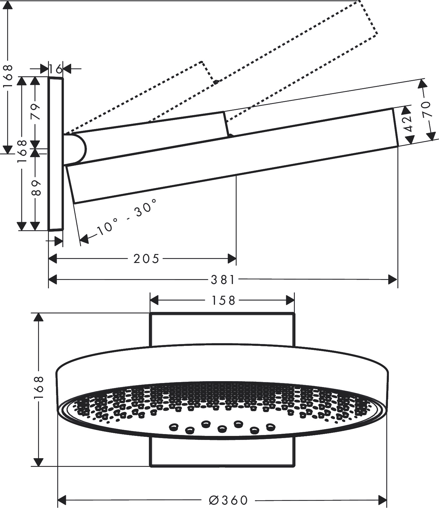- Diameter hoofddouche: 360 mm voor een royaal doucheoppervlak