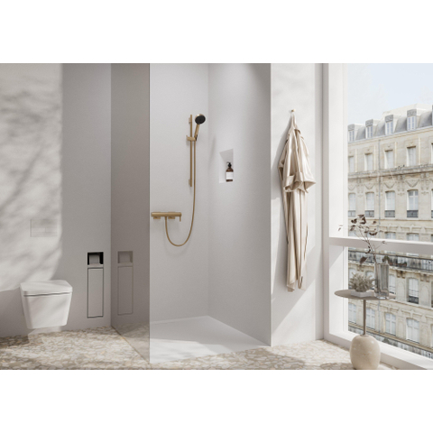 De warme, geborstelde bronzen afwerking geeft deze glijstang een tijdloze en elegante uitstraling die moeiteloos aansluit bij diverse badkamerstijlen. Het subtiele metaalaccent voegt karakter toe zonder te overheersen, waardoor je badkamer een harmonieuze en uitnodigende sfeer krijgt. Door te kiezen voor deze hoogwaardige afwerking, geef je jouw badkamer een exclusieve uitstraling die jarenlang mooi blijft. Bovendien zorgt het design met zachte rondingen voor een moderne, maar toch vriendelijke uitstraling die je elke dag opnieuw zal waarderen.