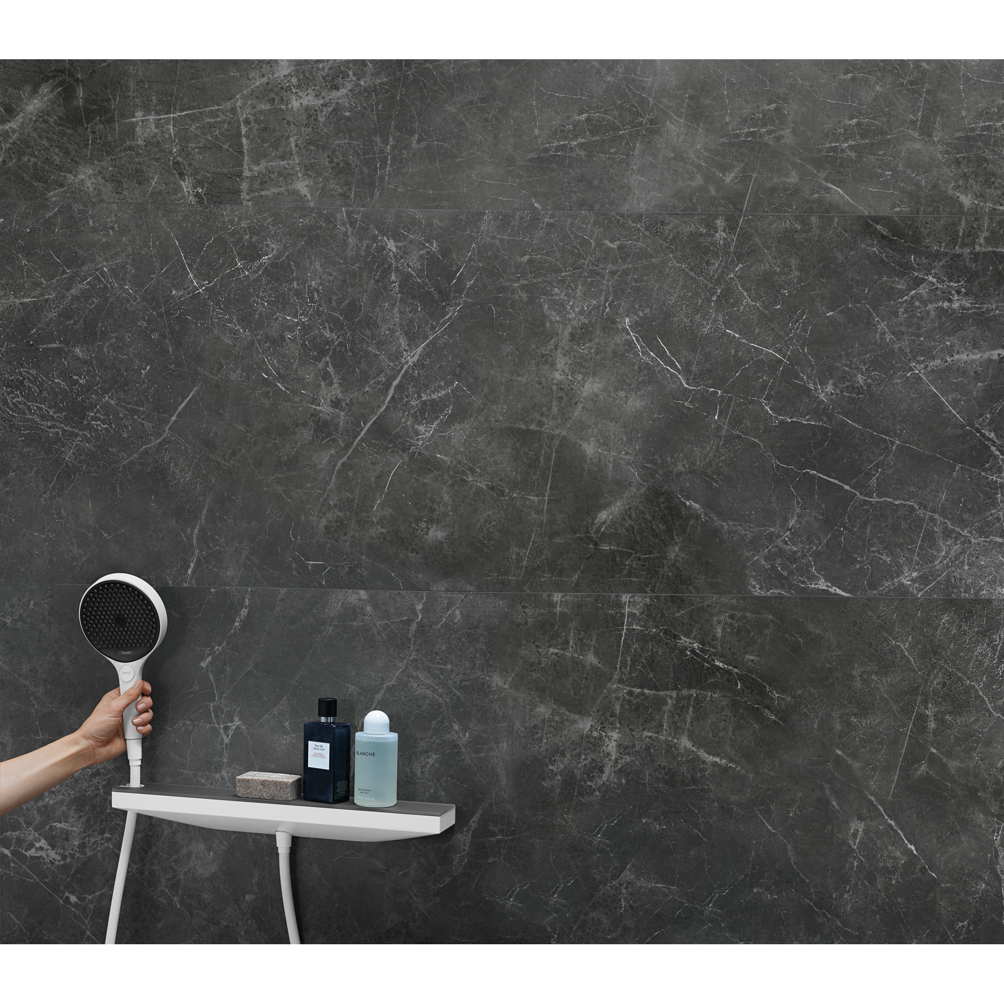 - Geïntegreerde douchehouder links voor handdouche, altijd binnen handbereik