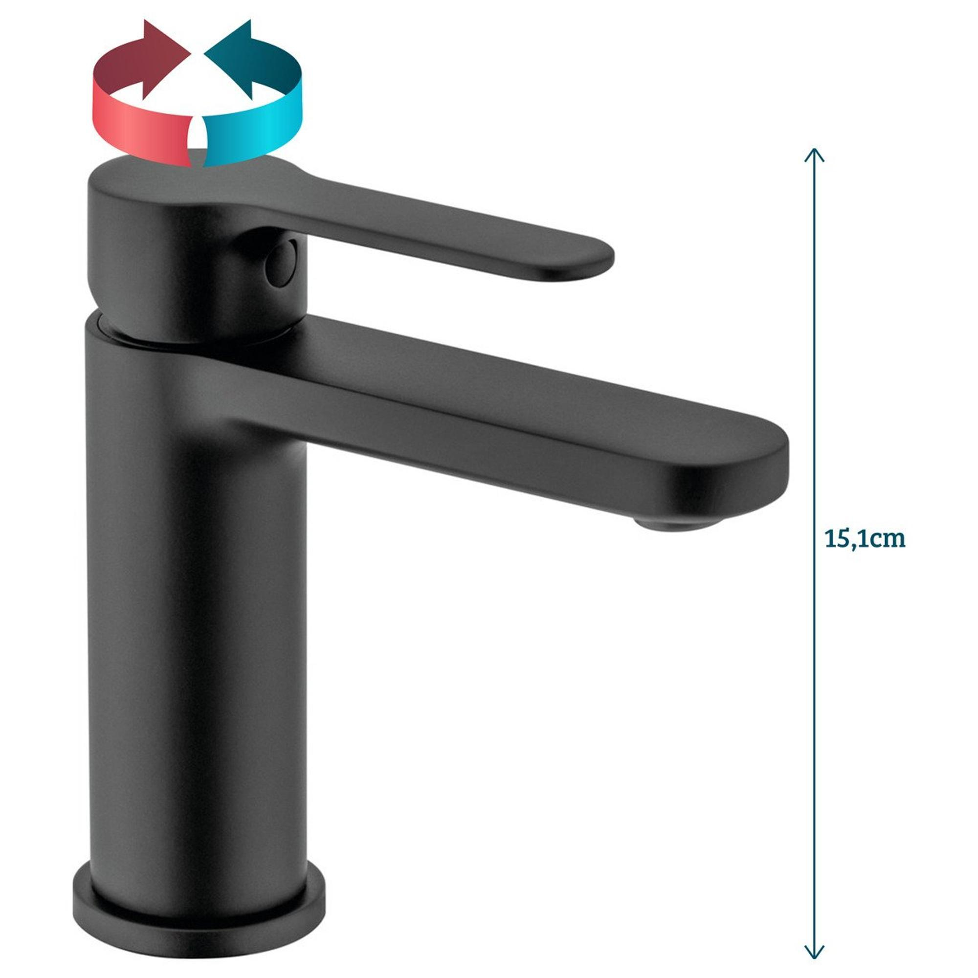 Deze compacte, matzwarte wastafelkraan is ideaal als je jouw badkamer of toiletruimte een moderne, strakke uitstraling wilt geven zonder in te leveren op praktisch gemak. Dankzij het slanke design en de bescheiden hoogte past hij perfect op een kleinere wastafel, in het toilet of in een minimalistische badkamersetting, maar ook in een grotere, designbadkamer komt hij mooi tot zijn recht als rustig, stijlvol accent. De eengreepsbediening maakt het dagelijks gebruik heel eenvoudig: met één hand regel je zowel de temperatuur als de waterhoeveelheid. Omdat deze kraan geleverd wordt zonder afvoer, is hij uitstekend te combineren met een moderne klikplug of bijpassende sifon naar jouw eigen smaak. Zo creëer je precies de uitstraling die bij jouw badkamer past, of je nu gaat voor strak industrieel, tijdloos zwart-wit of een warme hotelsfeer.Strak design voor een moderne badkamer