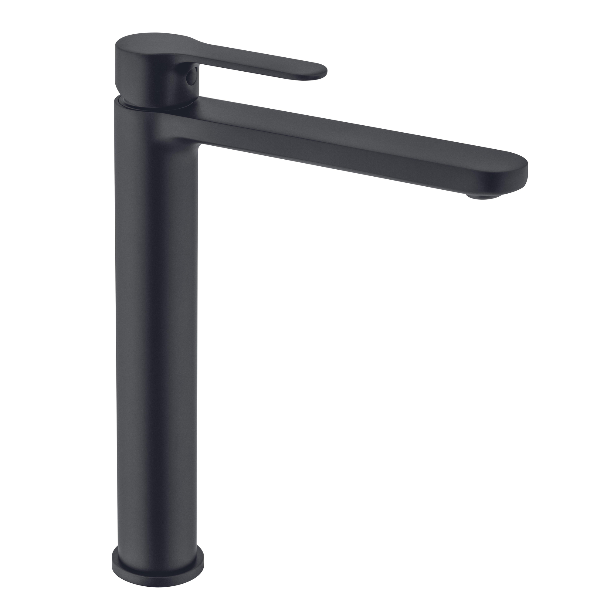 Deze hoge wastafelkraan is een uitstekende keuze als je een stijlvolle opzetwastafel hebt of graag wat extra hoogte en ruimte rond de waskom wilt. Dankzij het verhoogde ontwerp ontstaat er meer bewegingsvrijheid bij het wassen van je handen, gezicht of het vullen van een emmer, zonder dat het onrustig oogt. De matzwarte afwerking geeft een moderne en luxe uitstraling die perfect past in een industriële, moderne of designbadkamer. Ook in een kleinere badkamer of toiletruimte komt deze kraan goed tot zijn recht, omdat de strakke vormgeving rust en eenheid uitstraalt. Zoek je een hoge wastafelkraan zonder afvoergarnituur, bijvoorbeeld omdat je al een clickwaste hebt of een eigen sifonoplossing, dan sluit dit model precies aan bij jouw wensen.Strak design met matzwarte uitstraling