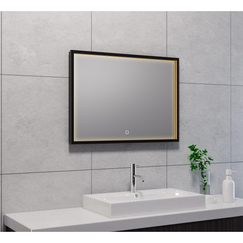Wiesbaden Avi spiegel rechthoek met LED, dimbaar en spiegelverwarming 70 x 50 cm mat zwart