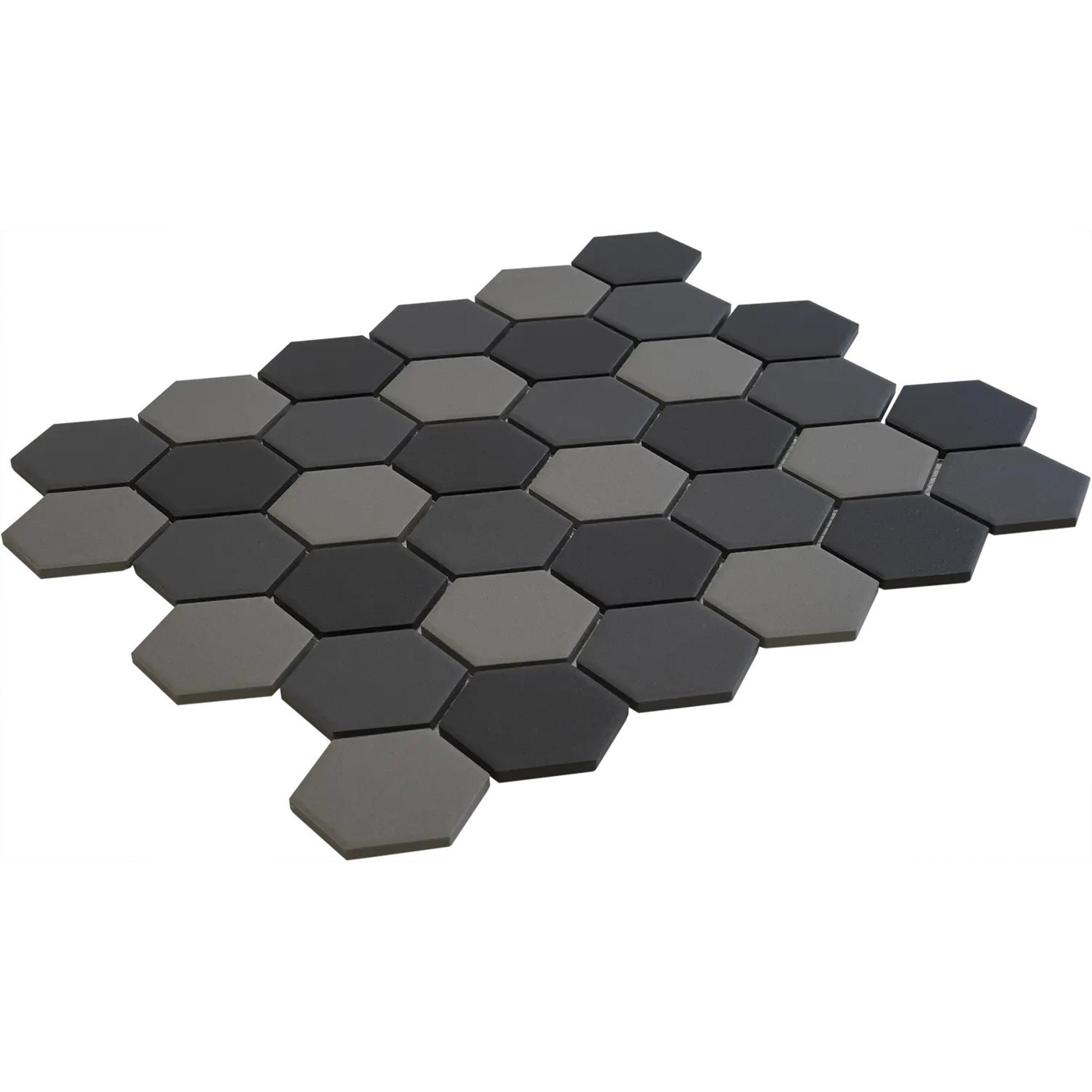 Ontdek de prachtige Mosaic Factory London mozaïektegel! Met zijn afmetingen van 28.2x32.1cm is deze tegel perfect voor zowel wand- als vloertoepassingen. De zeshoekige vorm voegt een uniek en eigentijds tintje toe aan elke ruimte. Gemaakt van hoogwaardig porselein in een mix van donkergrijs en mat, straalt deze tegel klasse en stijl uit. Of je nu een badkamer, keuken of een andere ruimte wilt transformeren, deze mozaïektegel is de perfecte keuze voor een verfijnde uitstraling.