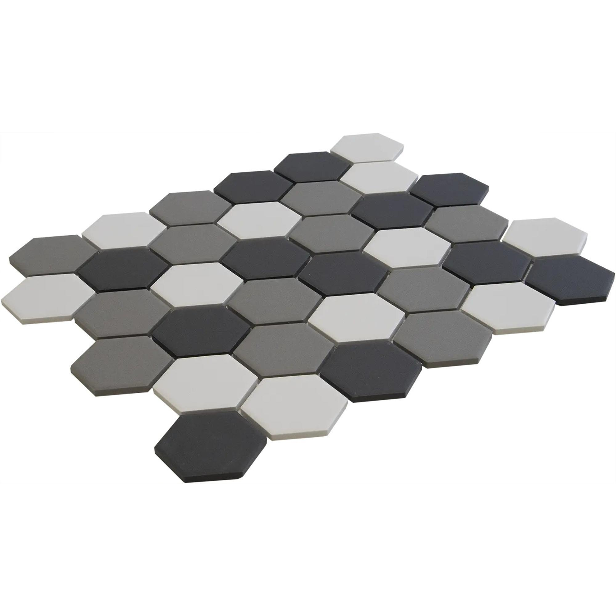 Met zijn verfijnde hexagonale vorm en matte afwerking straalt de Mosaic Factory London mozaïektegel een tijdloze elegantie uit. De subtiele contrastmix van kleuren voegt diepte en karakter toe aan elke ruimte. Of je nu kiest voor een uniforme installatie of een creatief patroon, deze tegel zal zeker de aandacht trekken en een statement maken in je interieur.