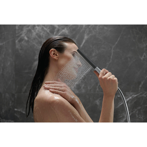 Ervaar hoe jouw badkamer verandert in een oase van rust en stijl met deze verfijnde staafhanddouche. Het slanke ontwerp in chroom met subtiele antracietaccenten voegt een moderne en elegante touch toe aan elke douchehoek. Dankzij de innovatieve PowderRain straalsoort word je omhuld door duizenden microfijne waterdruppels die zacht en rustgevend aanvoelen, alsof je onder een zomerse regenbui staat. Deze handdouche combineert moeiteloos esthetiek met functionaliteit, waardoor je niet alleen geniet van een prachtig design, maar ook van een uitzonderlijk comfortabele en stille douche-ervaring. Het is een waardevolle toevoeging die jouw dagelijkse routine verandert in een moment van persoonlijke wellness en ontspanning.