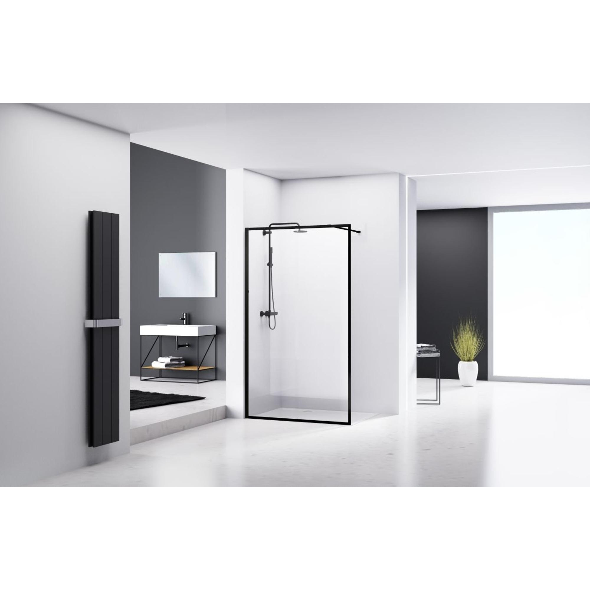 Van Rijn Products ST04 Vaste wand - 88x200cm - helder glas - dikte 8mm - incl. stabilisatiestang - zwart