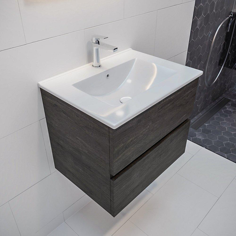 MONDIAZ VICA Badkamermeubelset - 60cm - 2 lades - wasbak Denia midden - 1 kraangat - keramiek dark brown