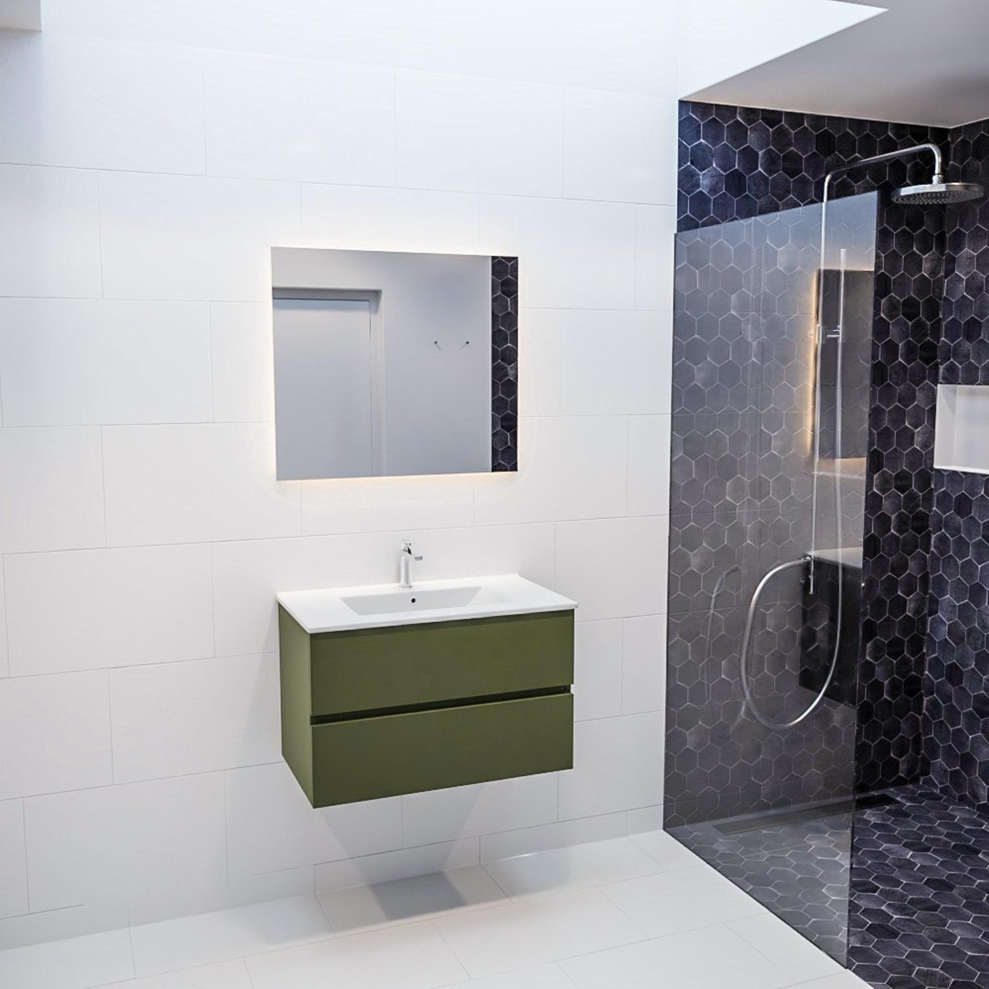 Dit prachtige MONDIAZ VICA badkamermeubelset is een ware eyecatcher voor jouw badkamer. Met een breedte van 80cm en twee ruime lades biedt het niet alleen voldoende opbergruimte, maar voegt het ook een stijlvolle touch toe aan de ruimte. De wasbak Denia in het midden, met één kraangat, is gemaakt van duurzaam keramiek materiaal in een elegante army kleur. Dit meubelstuk combineert functionaliteit met een modern en luxe design, waardoor het perfect is voor elke badkamer.