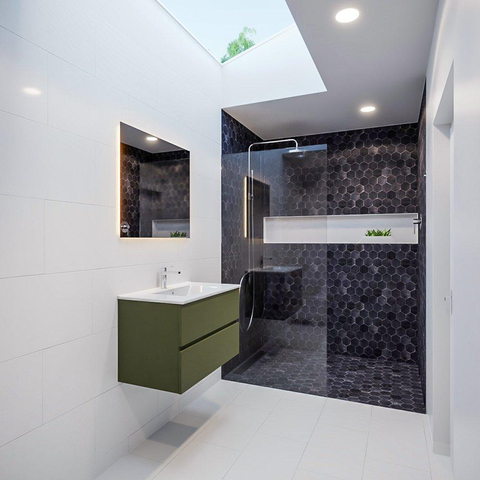 De MONDIAZ VICA badkamermeubelset straalt luxe en comfort uit. Het keramiek materiaal waarvan de wasbak is gemaakt, voelt niet alleen prettig aan, maar is ook gemakkelijk te reinigen en te onderhouden. De army kleur geeft een warme en uitnodigende sfeer aan de badkamer, waardoor je elke dag kunt genieten van een spa-achtige ervaring in je eigen huis.
