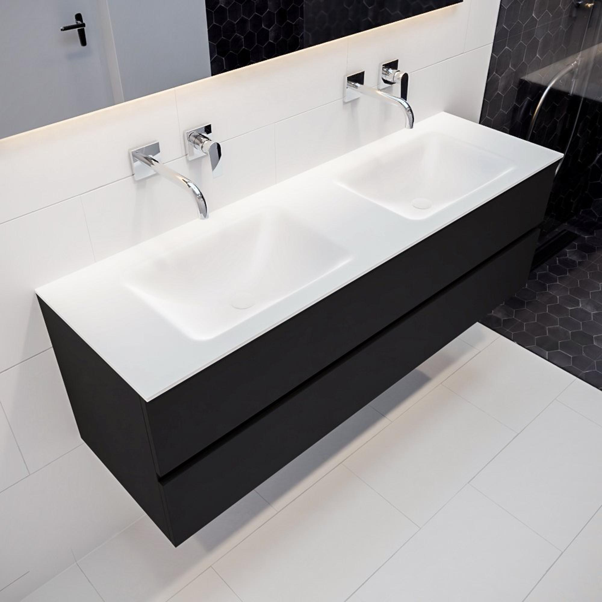 MONDIAZ VICA Badkamermeubelset - 150cm - 2 lades - wasbak Cloud dubbel - 0 kraangaten - solid surface urban