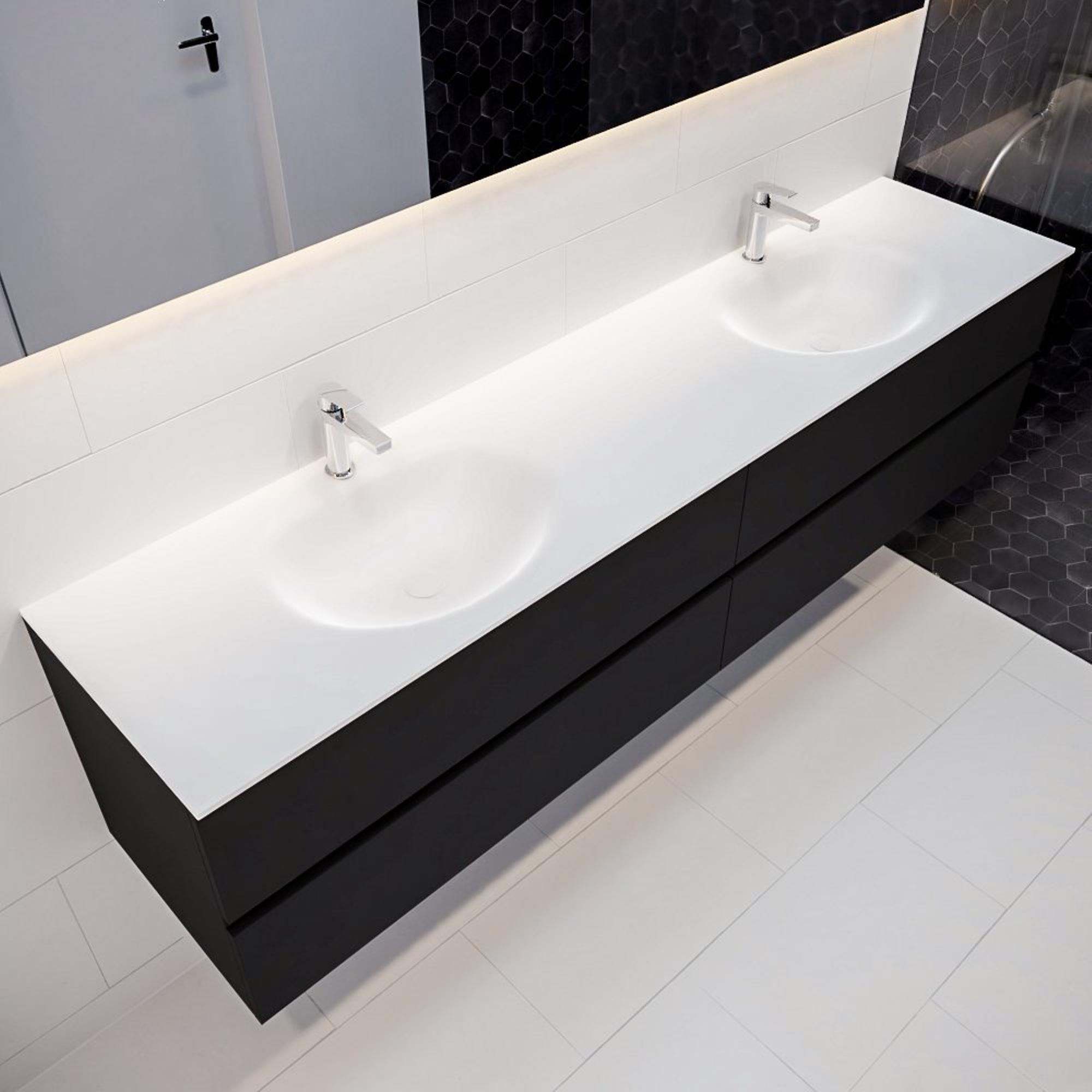 MONDIAZ VICA Badkamermeubelset - 200cm - 4 lades - wasbak Moon dubbel - 2 kraangaten - solid surface urban