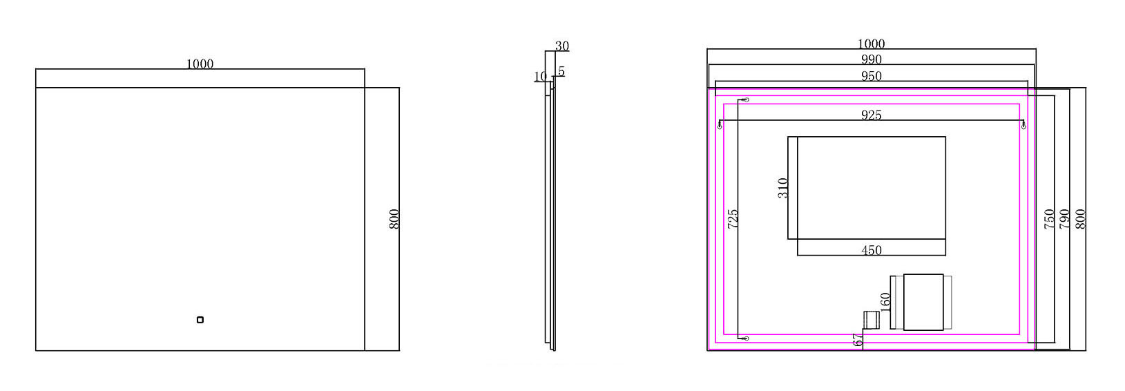 | Type spiegel | Wandspiegel met verlichting | |