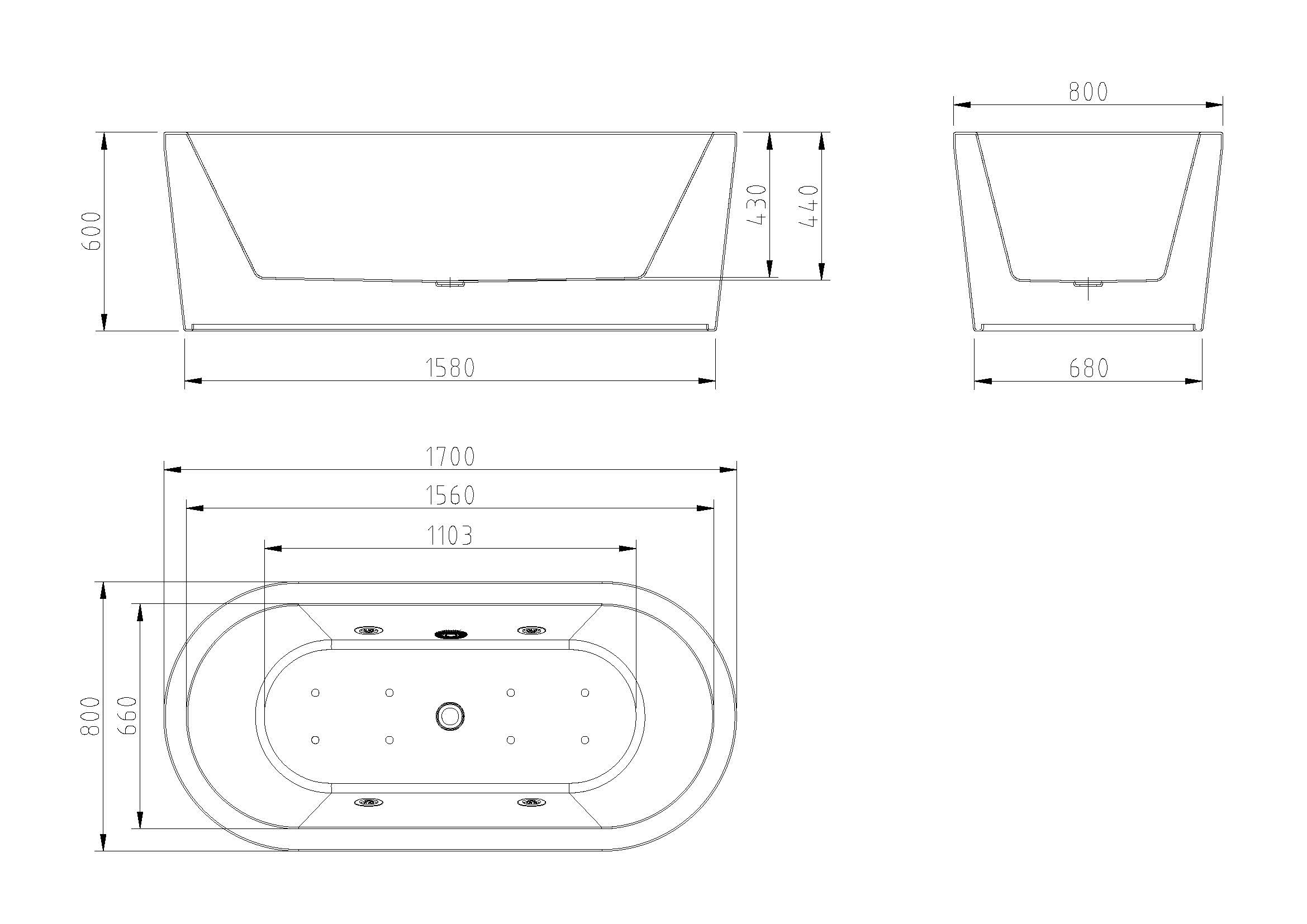 Wiesbaden Libero vrijstaand whirlpool ligbad 170x80 cm acryl glans wit met waste chroom