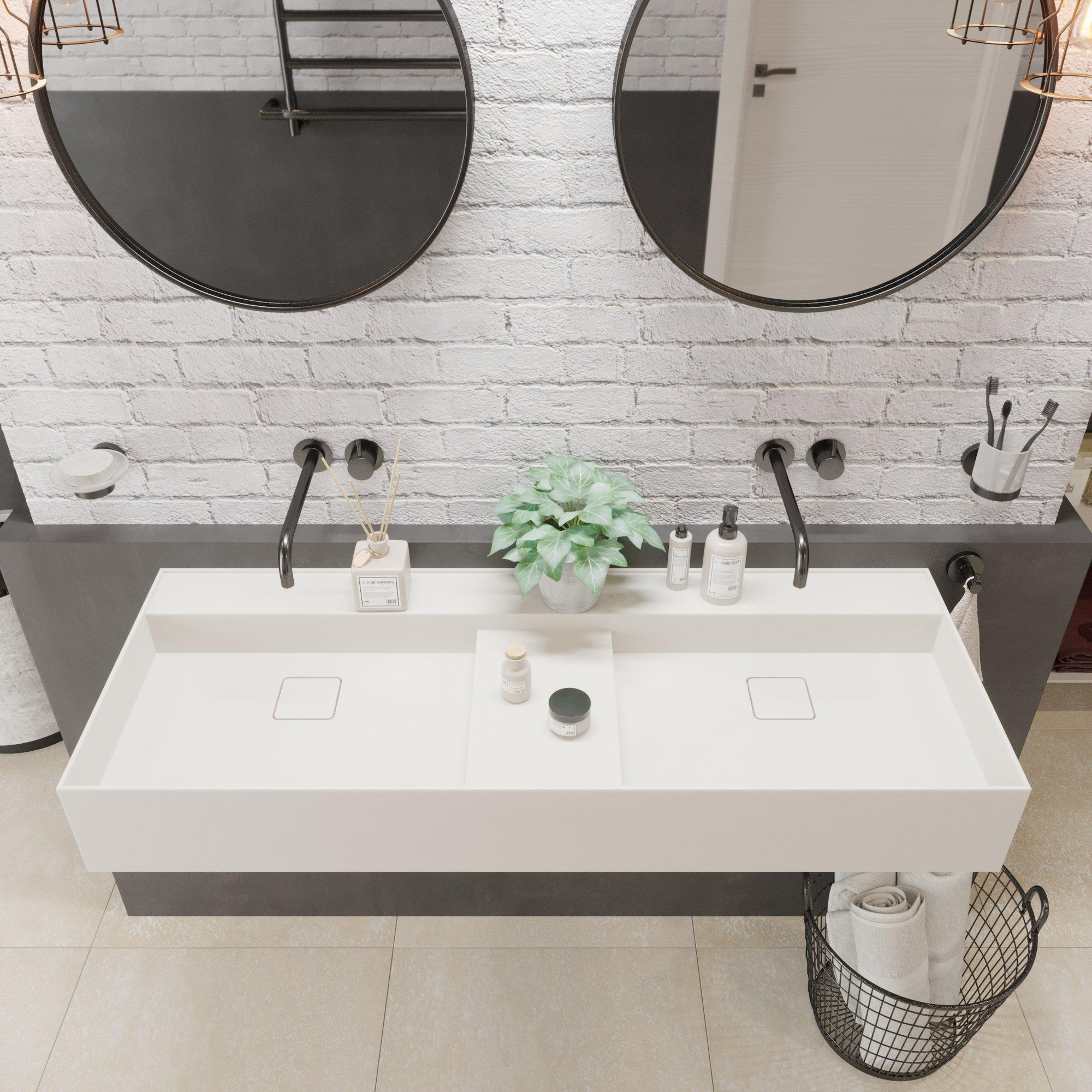 Zoek je een ruime, moderne wastafel die je badkamer een rustige, luxe uitstraling geeft? Deze elegante uitvoering met royale lengte is bijzonder geschikt voor gezinsbadkamers, designbadkamers en stijlvolle hotelsuites waar functionaliteit en vormgeving samen moeten gaan. Dankzij de strakke, rechthoekige vorm, de mat witte kleur en de subtiel dunne randen oogt je wastafelblad licht en minimalistisch, terwijl het solide materiaal juist heel robuust aanvoelt. De uitvoering zonder kraangaten maakt het ideaal om te combineren met een opbouw- of wandkraan, zodat je zelf de uitstraling bepaalt, van strak modern tot warm spa-gevoel. Door de slimme indeling met geïntegreerd plateau creëer je bovendien extra ruimte voor dagelijkse benodigdheden, zonder dat het geheel druk of rommelig oogt. Zo kies je voor een wastafel die perfect past in een moderne, doordachte badkamerindeling.