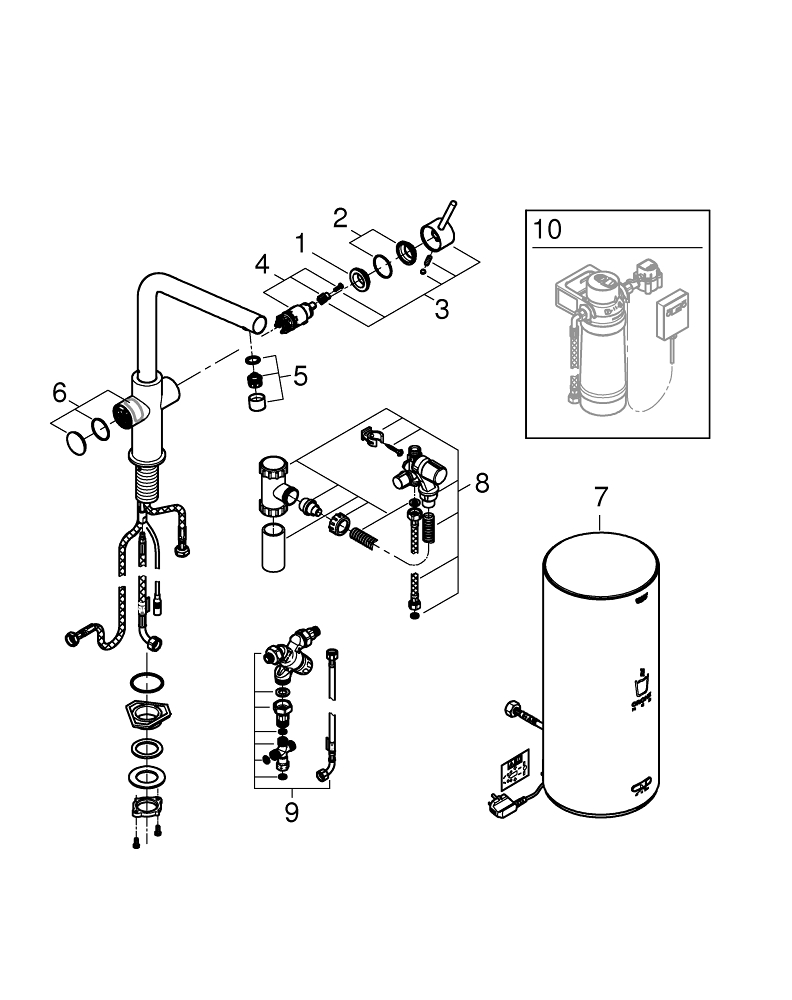 - GROHE ChildLock met LED-indicatie voor veilige bediening van kokend water