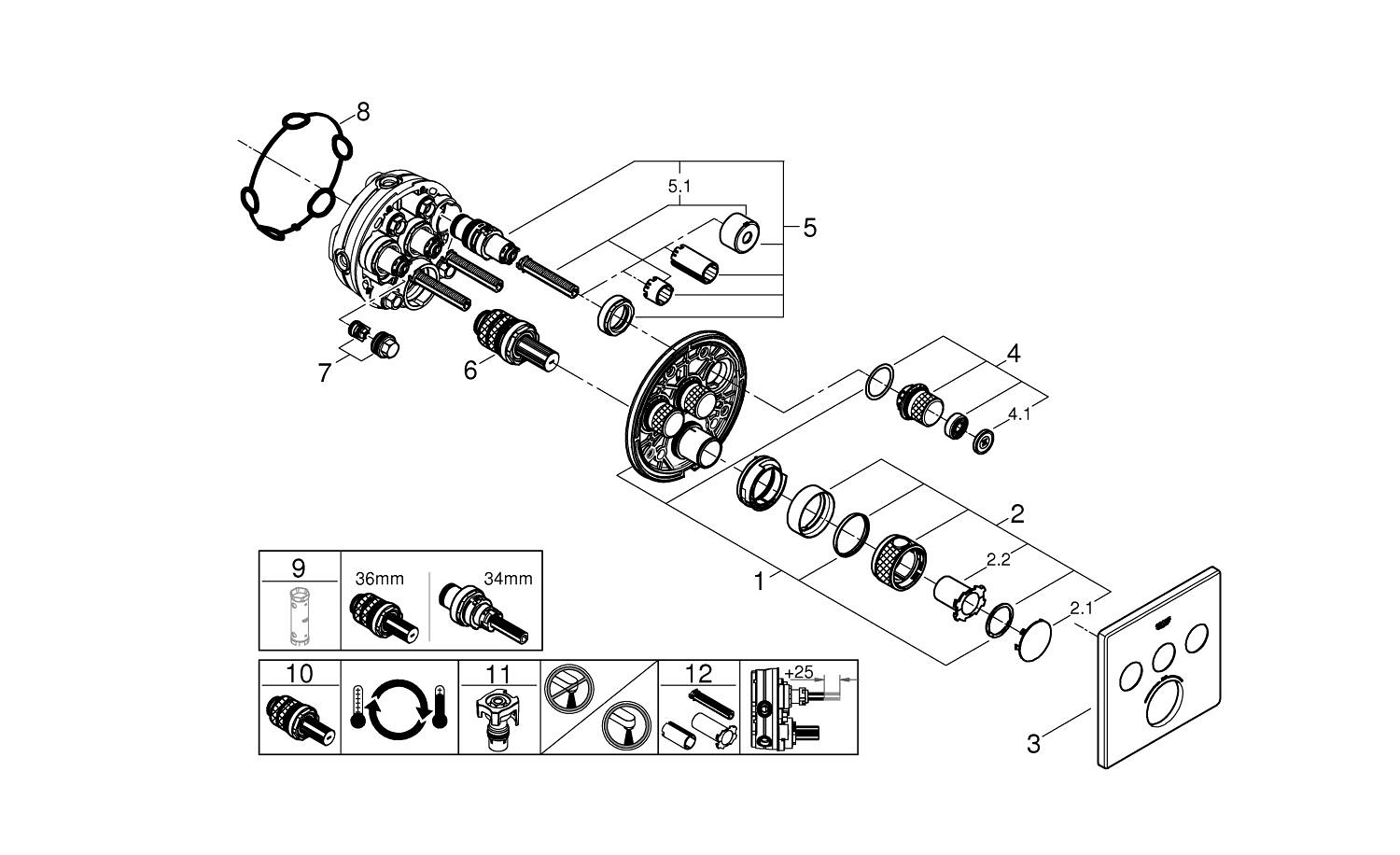 - GROHE EasyLogic-markeringen en verwisselbare symbolen voor intuïtief gebruik