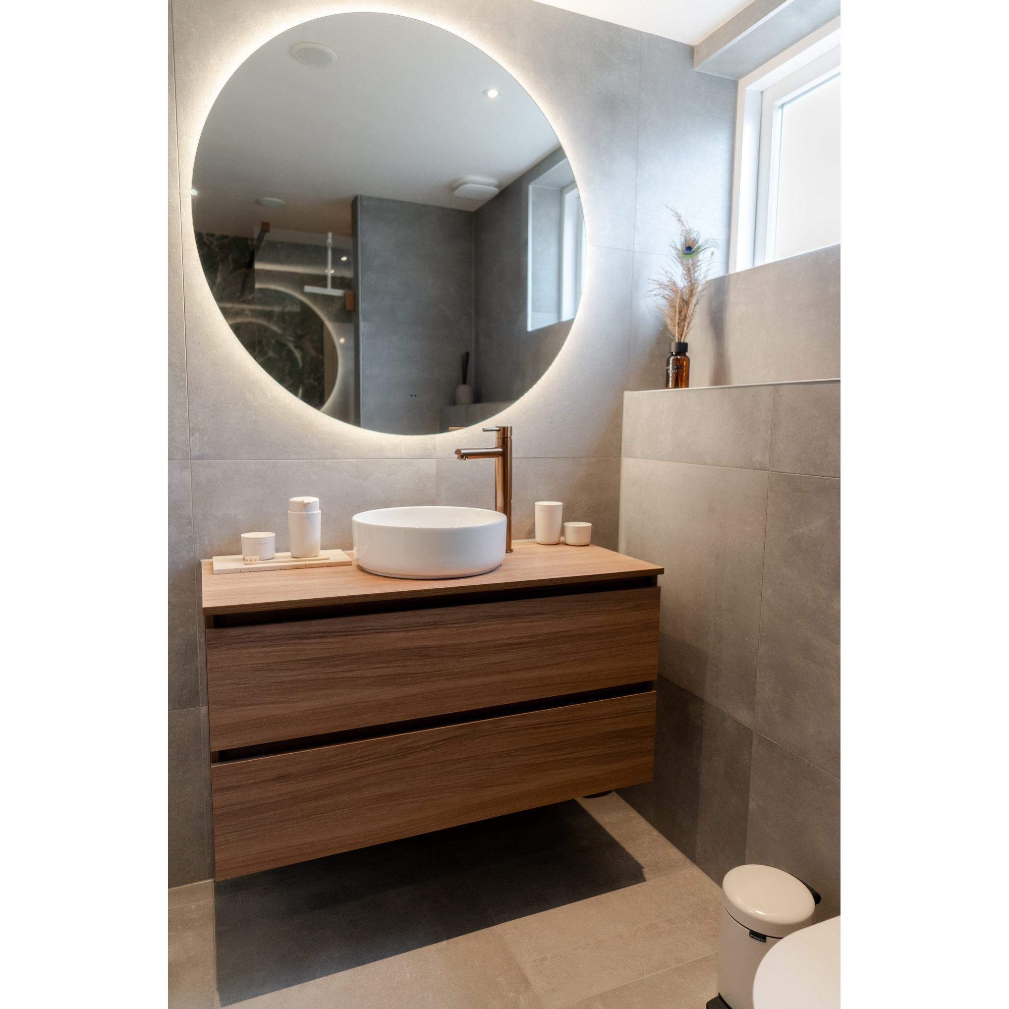 De INK Wastafelonderkast straalt een elegante en verfijnde sfeer uit die elke badkamer transformeert. De combinatie van de greeploze lades, houten keerlijst en Zuiver eiken MFC-materiaal creëert een harmonieus geheel dat luxe en comfort uitstraalt. Deze kast voegt niet alleen stijl toe aan de ruimte, maar biedt ook een functionele oplossing voor het opbergen van diverse badkamerartikelen.