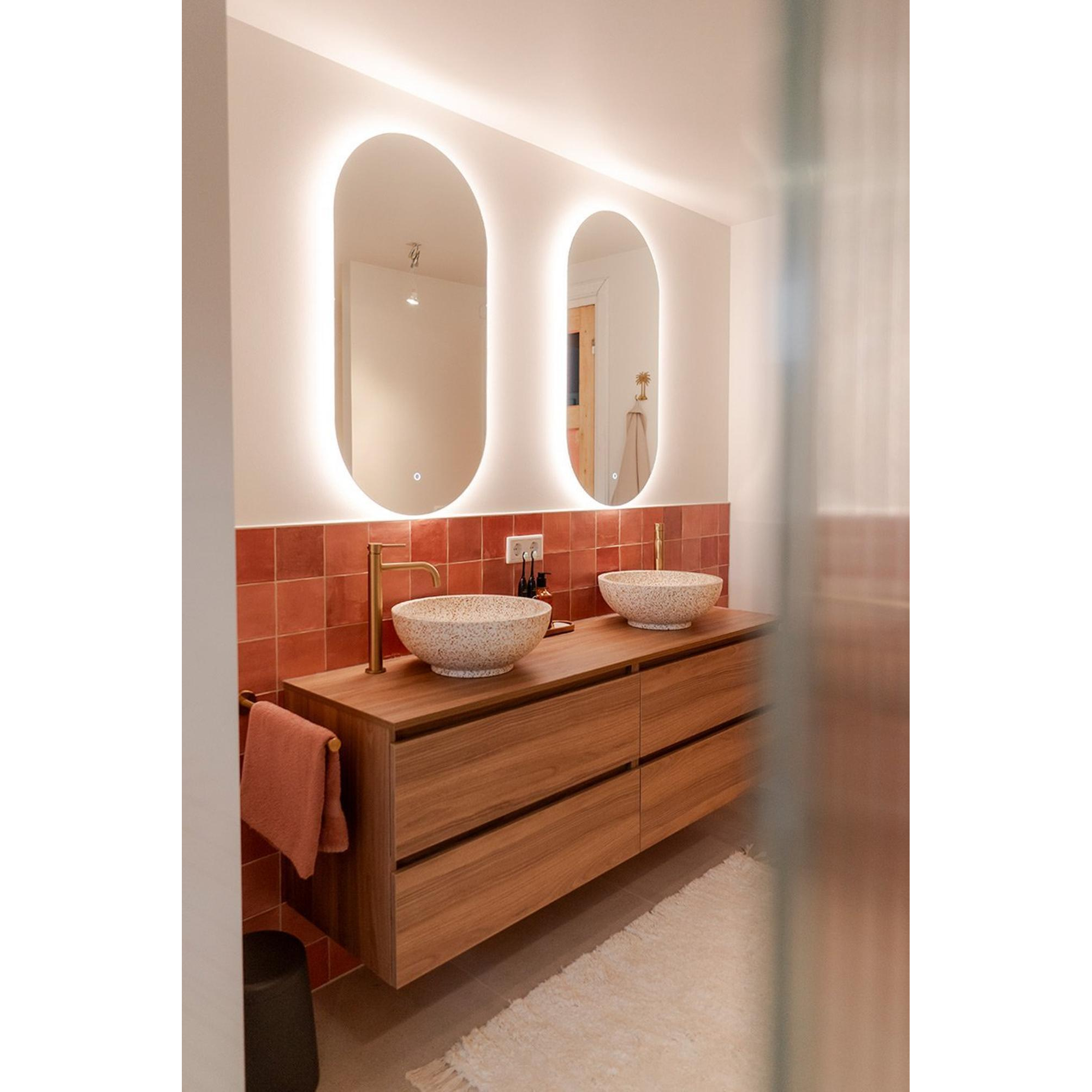 De INK wastafelonderkast is ontworpen met oog voor detail en vakmanschap. Het greeploze design zorgt voor een strakke en eigentijdse uitstraling, terwijl de houten keerlijst een vleugje warmte en natuurlijke charme toevoegt aan de kast. De MFC Zuiver eiken afwerking geeft het geheel een luxe uitstraling die elke badkamer transformeert tot een oase van rust en schoonheid.