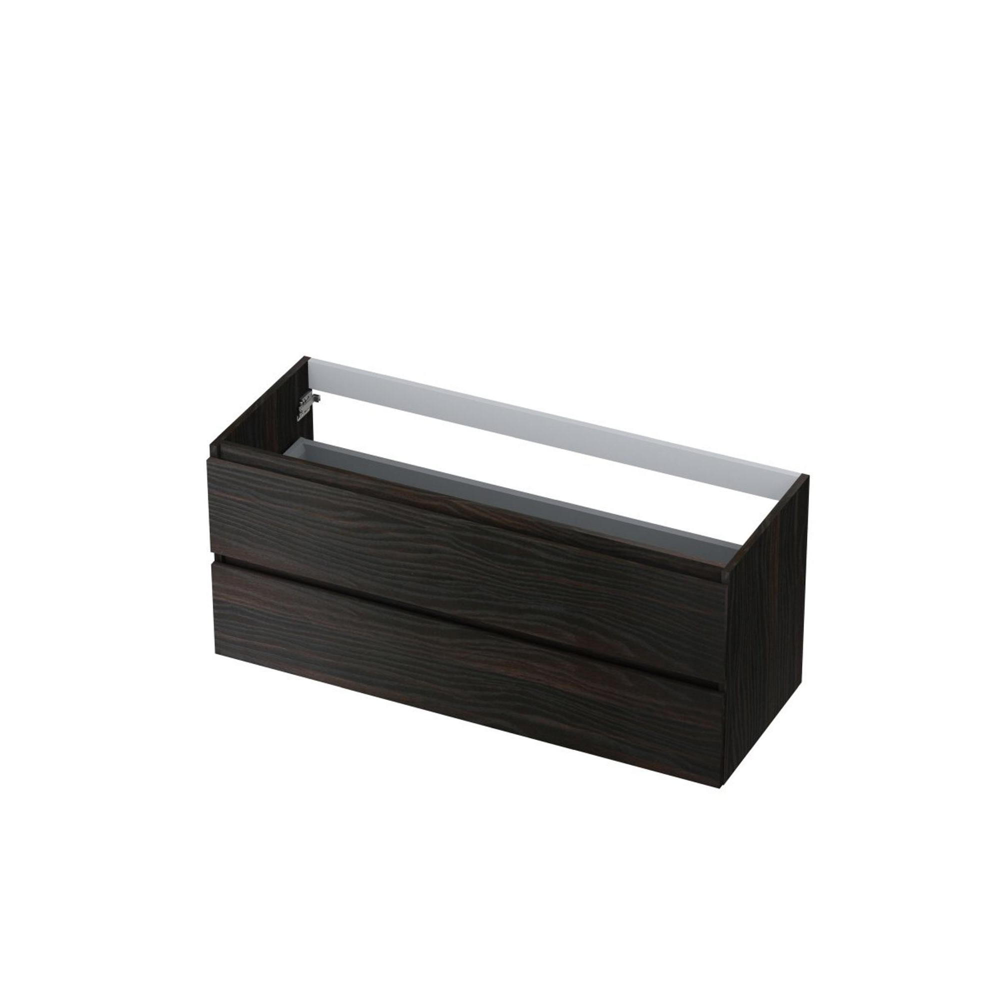INK Wastafelonderkast - 120x45x52cm - 2 lades - greeploos - houten keerlijst - MFC Intens eiken