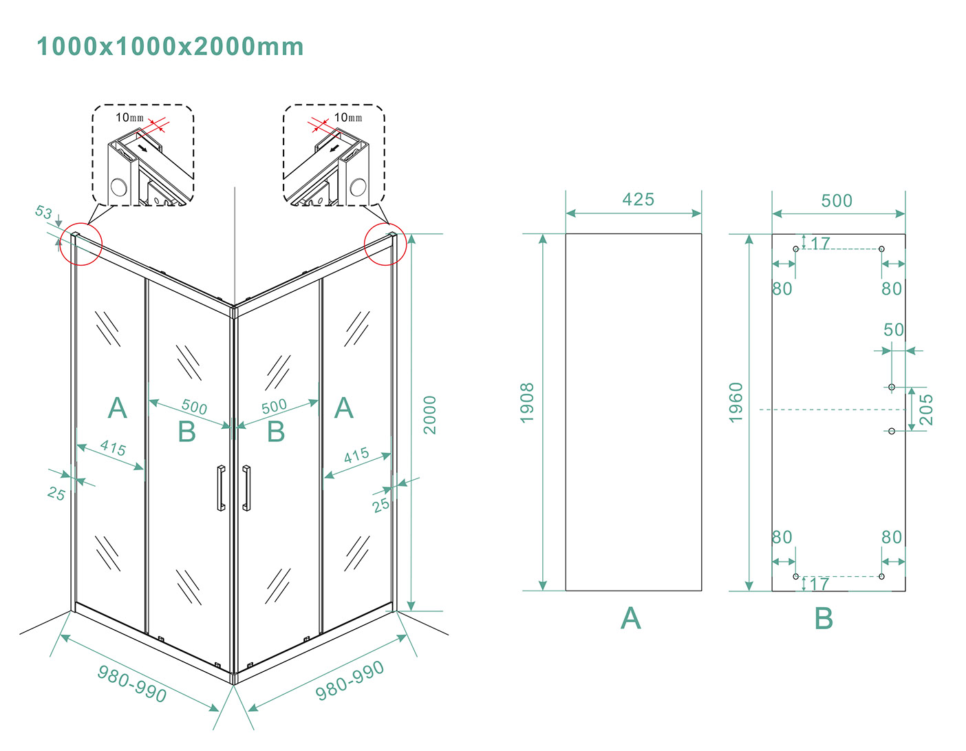 In de profielen van de cabine zit een verstelbaarheid van 1 centimeter. Deze cabine is verstelbaar van 98 tot 99 cm. (aan te passen per maat). Hierdoor is de cabine is ook geschikt om op een douchebak te plaatsen. Mocht je de cabine op de grond willen plaatsen, houd dan rekening met de opgegeven verstelbaarheid.