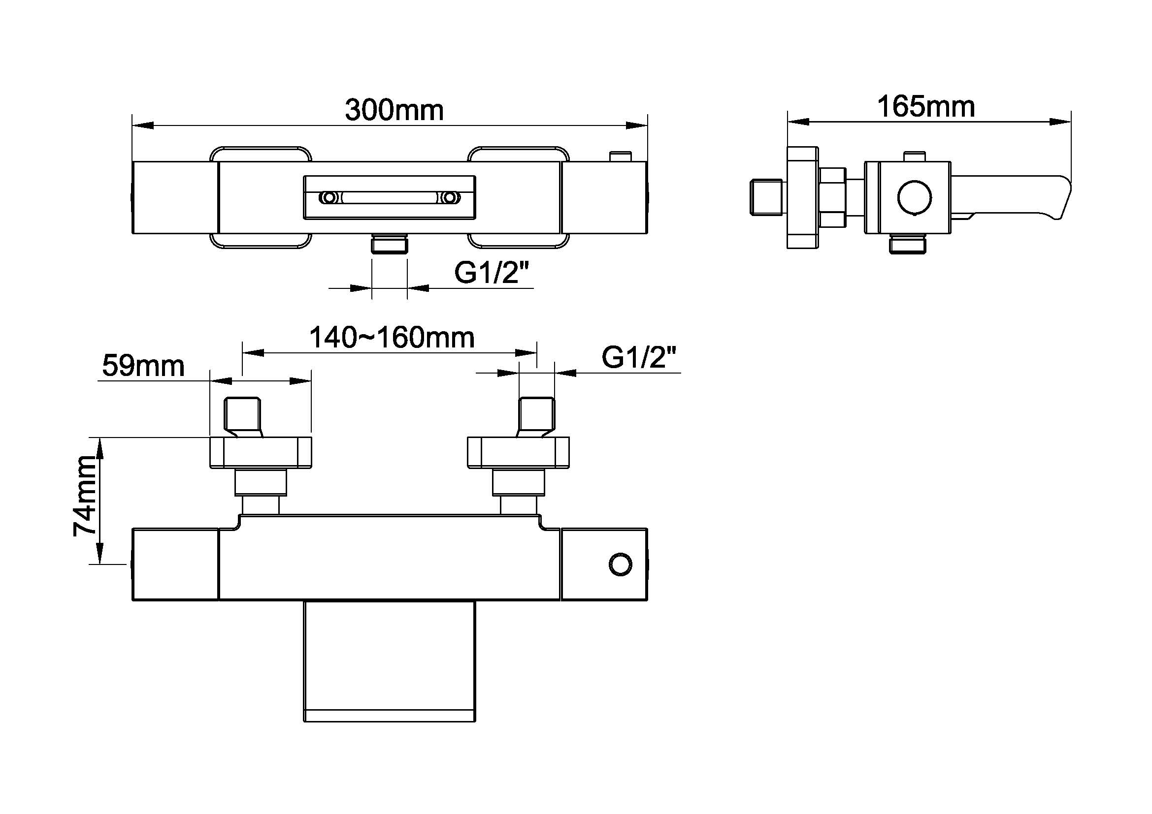 Xellanz Rombo thermostatische badmengkraan waterval geborsteld staal PVD