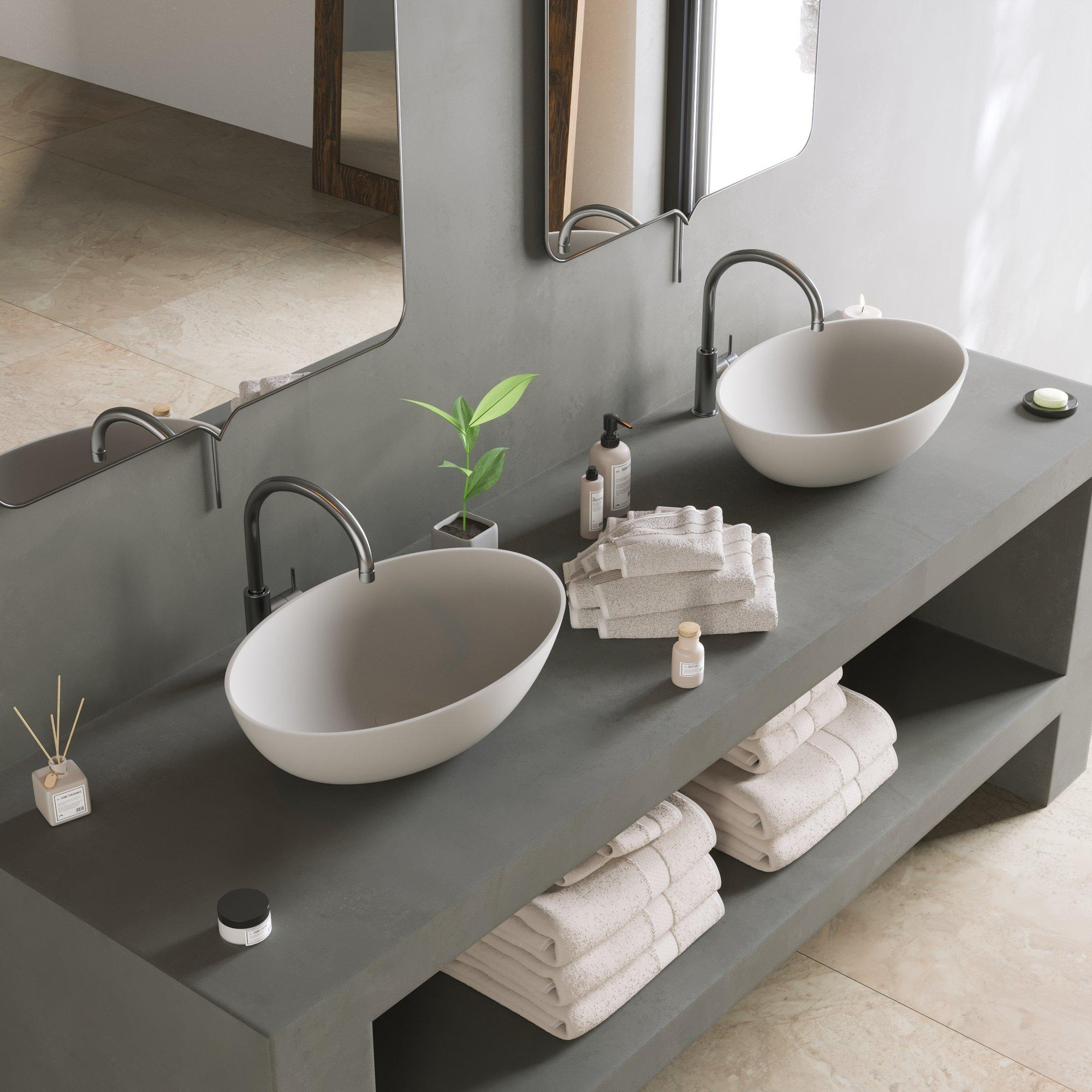 - Compacte ovale opbouwwaskom van 50x33x14,5 cm, ideaal voor zowel kleine als grotere badkamers