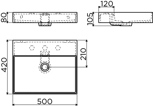 De rechthoekige vorm met een maat van 50x42 cm zorgt voor een fijne balans tussen werkruimte en compactheid. Je hebt genoeg plek om je handen comfortabel te wassen, zonder dat de wastafel te ver de ruimte in steekt. Dat maakt dit model ideaal voor smallere badkamers, toiletgroepen of een tweede wastafel in de logeerkamer. De lage hoogte van circa 8 cm geeft een elegant, slank profiel dat mooi aansluit bij moderne kranen en accessoires. Door de centrale afvoer en geïntegreerde overloop blijft het geheel rustig ogen, wat weer bijdraagt aan een opgeruimde, ruimtelijke uitstraling.
