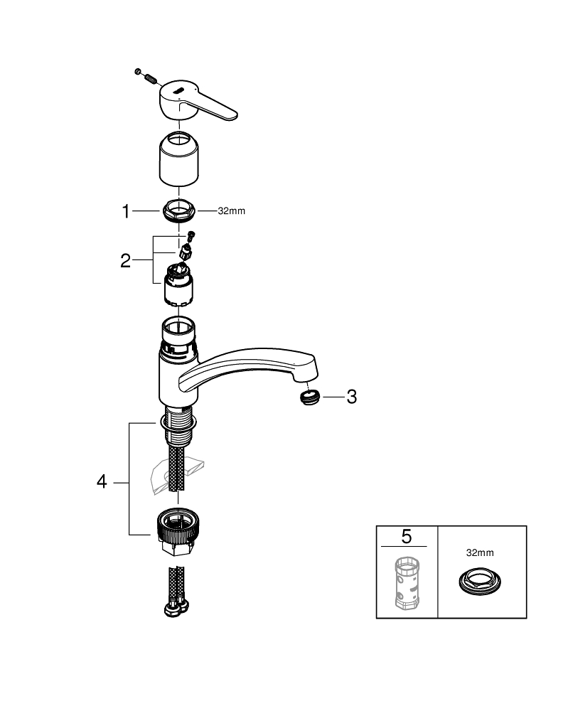 - Gescheiden waterkanalen (GROHE Zero) voor 100% lood- en nikkelvrij water
