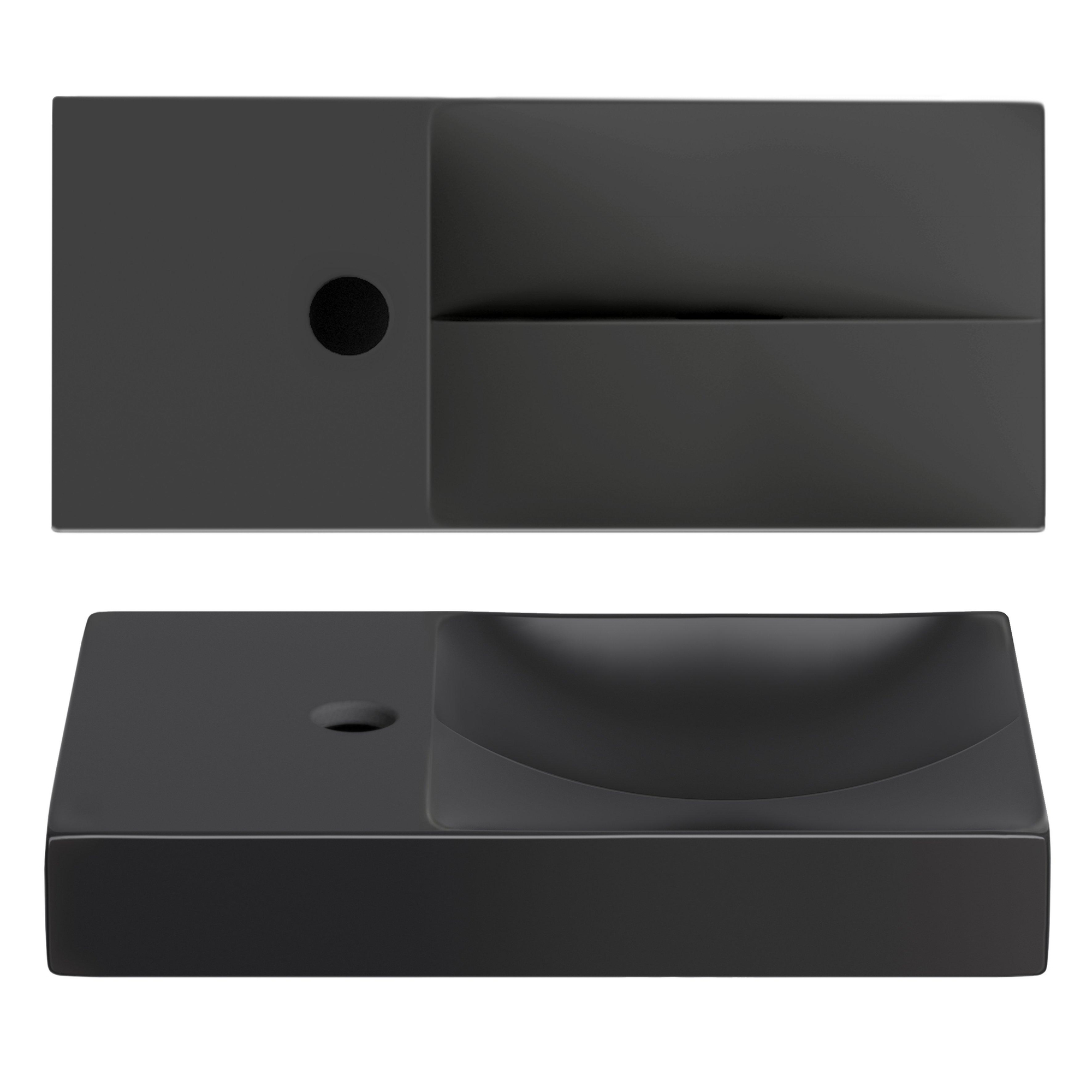 Clou Vale keramiek fontein 45x19x7cm kraangat links zwart mat