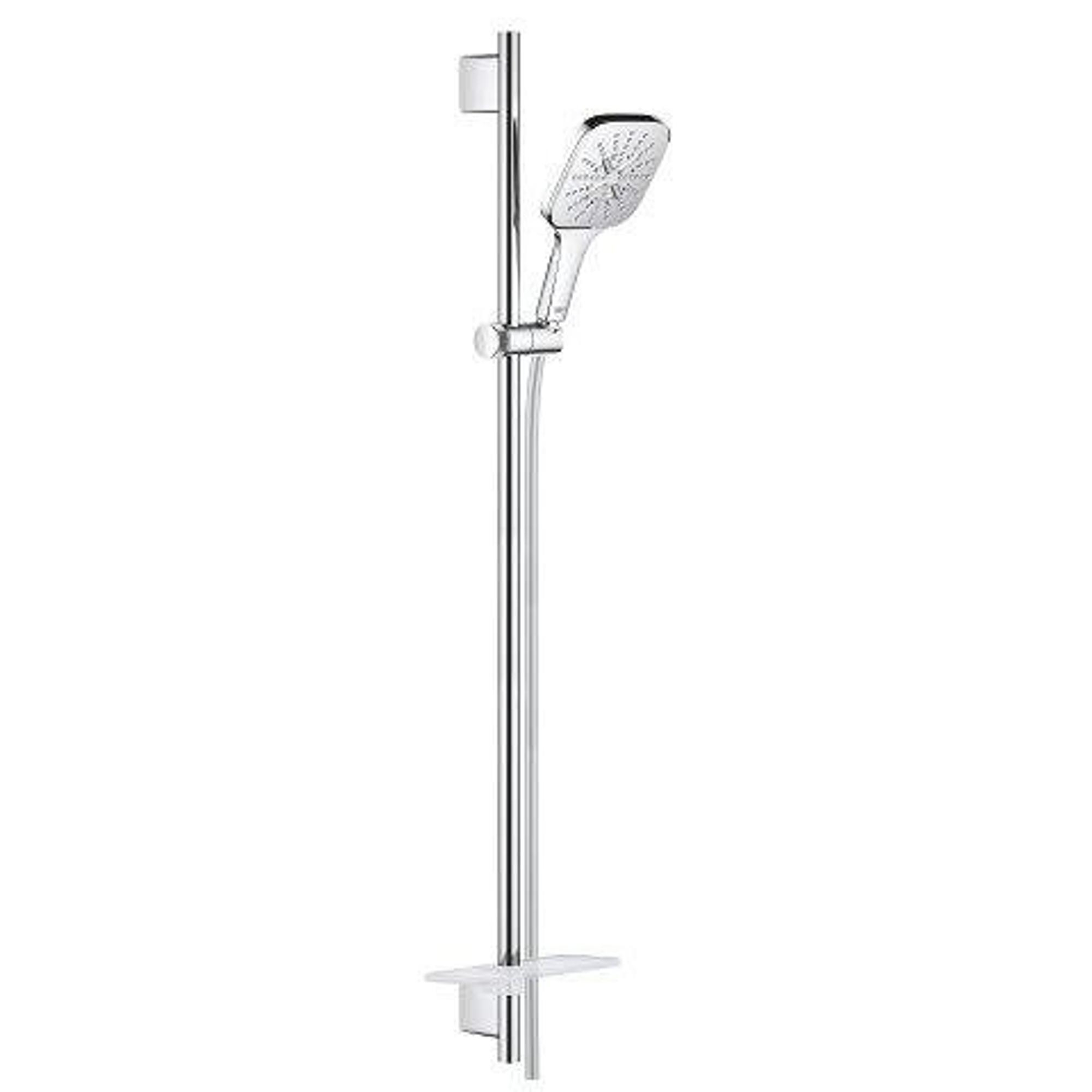GROHE Rainshower Smartactive 130 Cube Glijstangset - 90cm - vierkante handdouche - 3 straalsoorten - gladde doucheslang - met zeepschaal - chroom