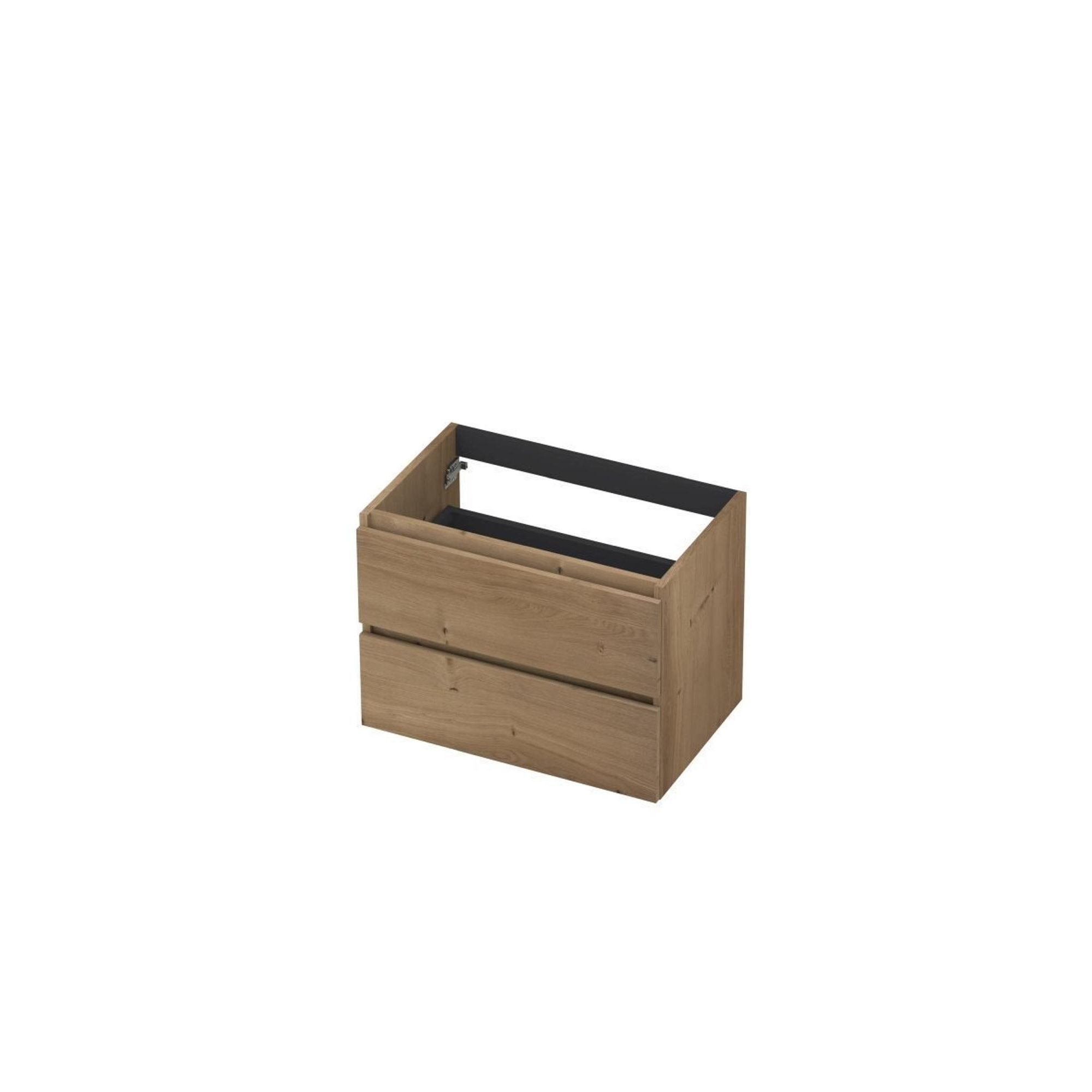 INK Fineer Wastafelonderkast - 70x45x52cm - 2 lades - greeploos - houten keerlijst - MDF Fineer Ash grey