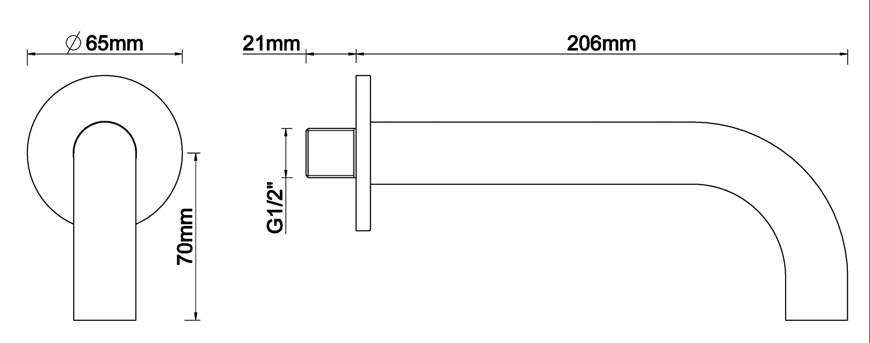 Wiesbaden Caral baduitloop rond 20 cm 1/2" gunmetal PVD