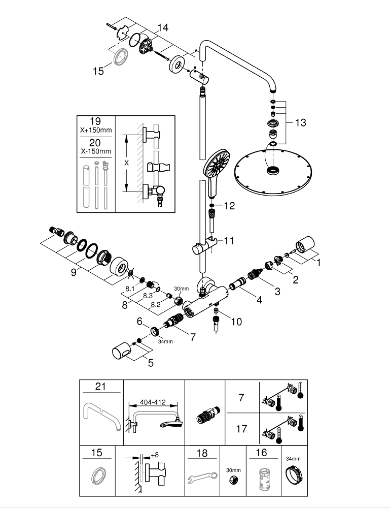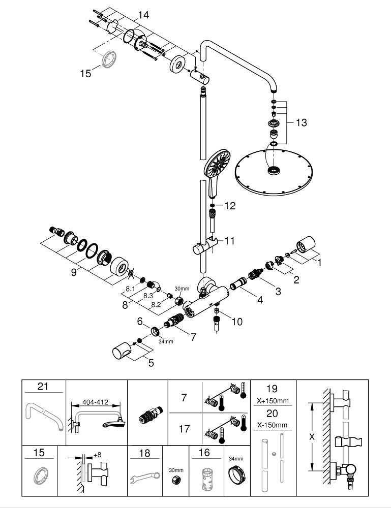 GROHE FastFixation verstelbare bovensteun voor minimale aanpassing aan bestaande boorgaten